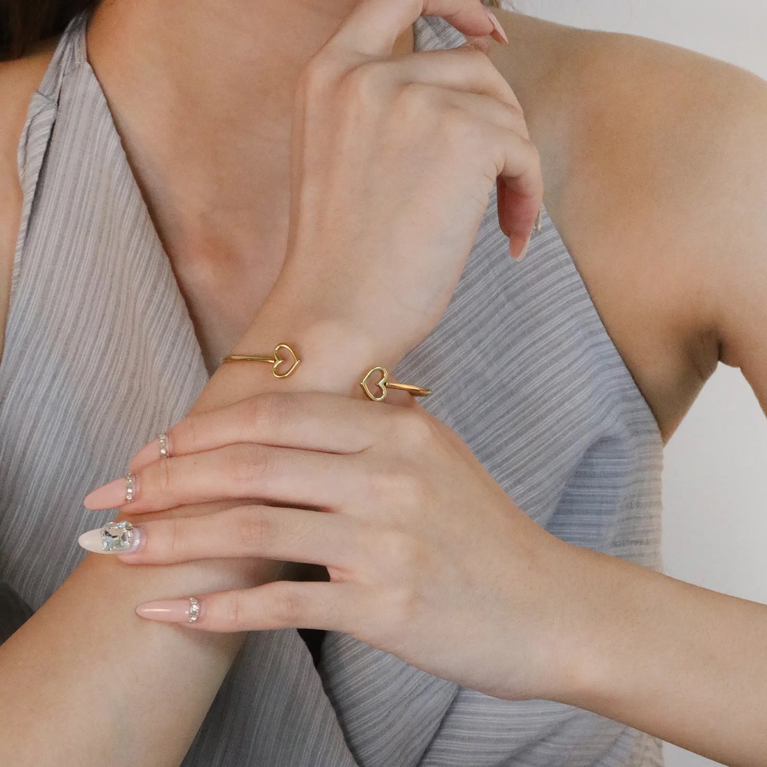 ✨ Wholesale Heart Opening Bangle | 2mm Thin Gold Cuff with Double Heart Cut-Outs | 60mm Inner Diameter Stainless Steel Bracelet for Women