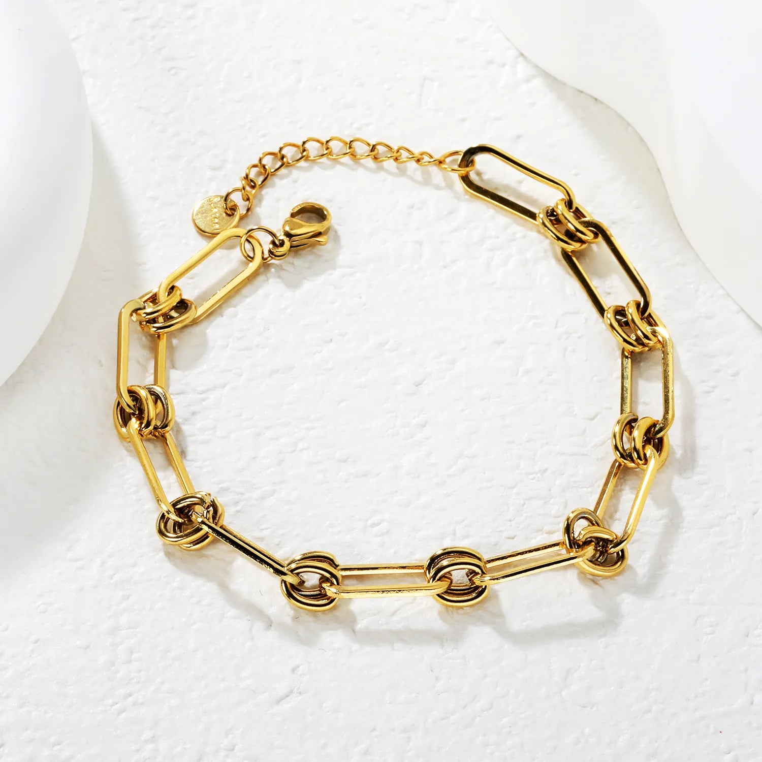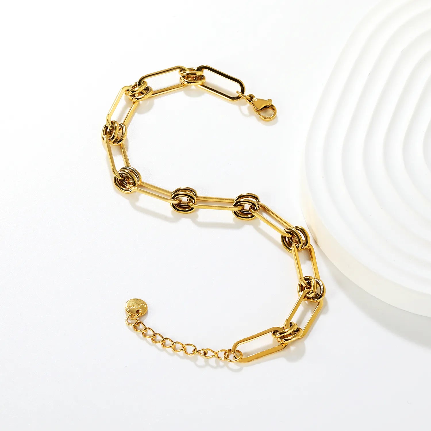 ✨ Wholesale Minimalist Bar Bracelet | 6.6x16mm Paperclip-shaped Accessory | Gold Plated Stainless Steel Chain 18+3cm | Simple Elegant Jewelry