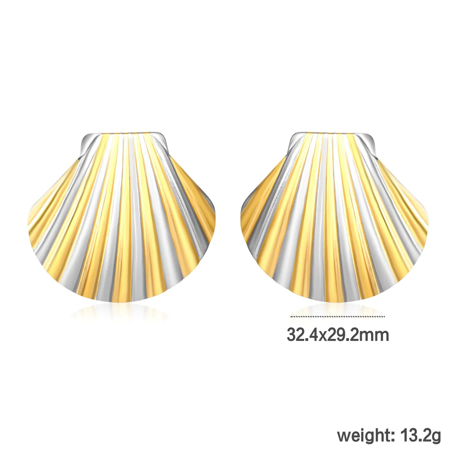 ✨ Wholesale Stainless Steel Shell Earrings | 32.4*29.2mm Natural Mother-of-Pearl | Gold/Steel/Two-Tone Colors | Hypoallergenic Studs