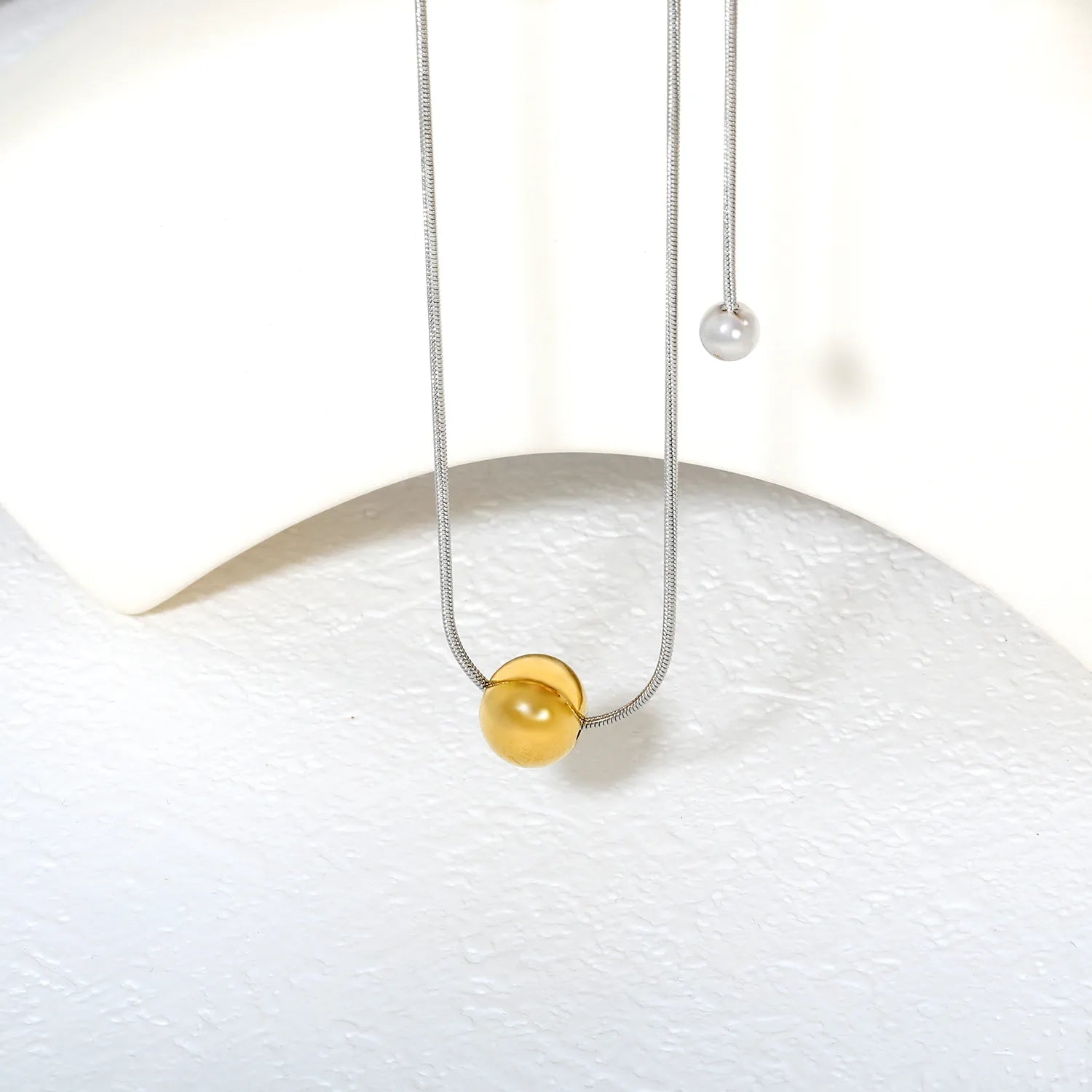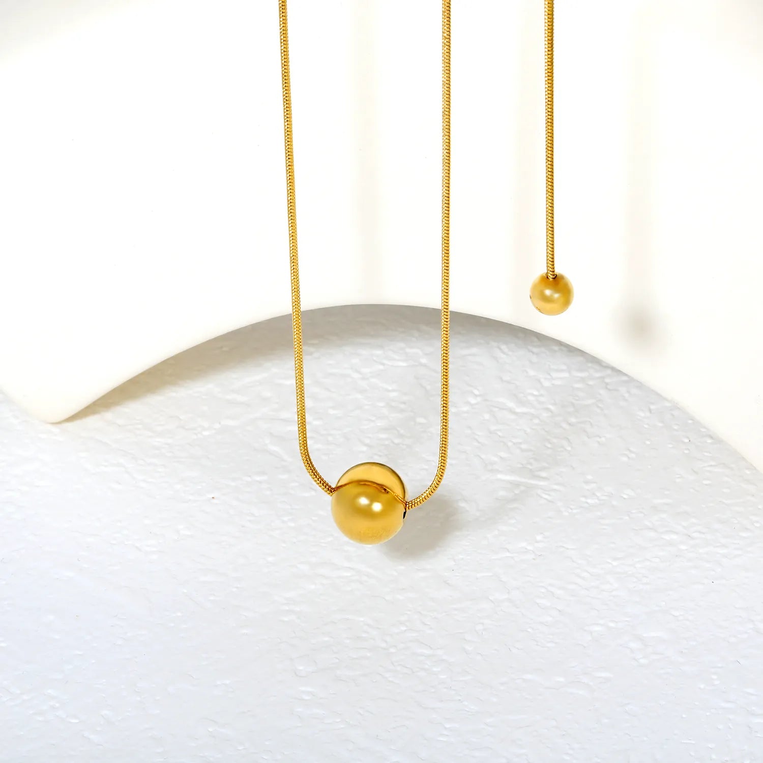 ✨ Wholesale Two-Tone/Gold Stainless Steel Beaded Necklace | 12mm Gold Beads & 1.2mm Snake Chain 60cm | Statement Sweater Chain