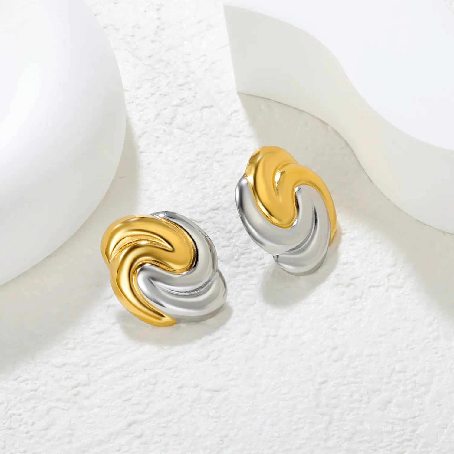 ✨ Wholesale Two-Tone Stainless Steel Geometric Earrings | 20*25.3mm Irregular Color-Block Design | Modern Abstract Studs