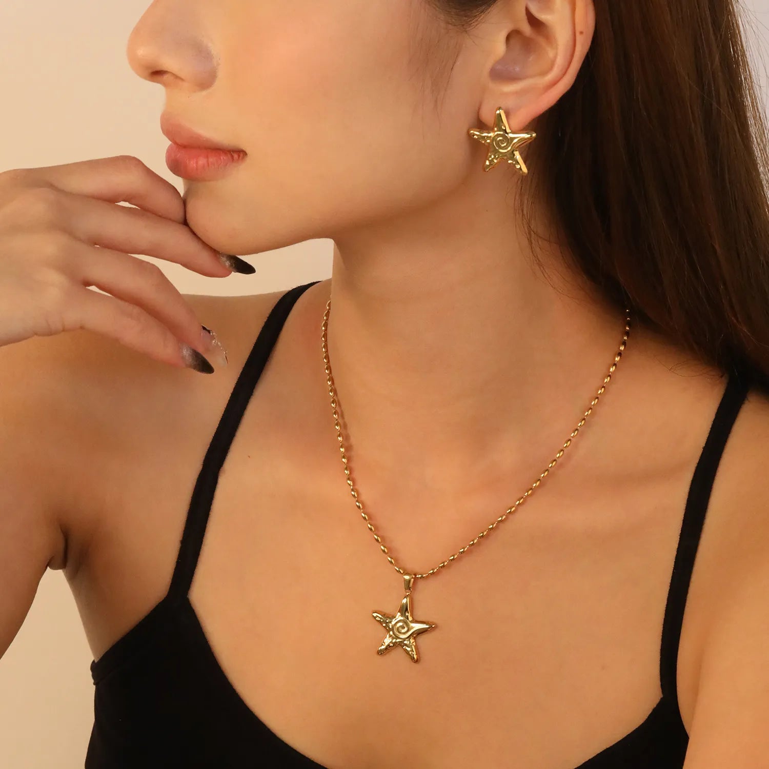 ⭐ Wholesale Threaded Starfish Set | 26x26.6mm Earrings+Pendant | Gold