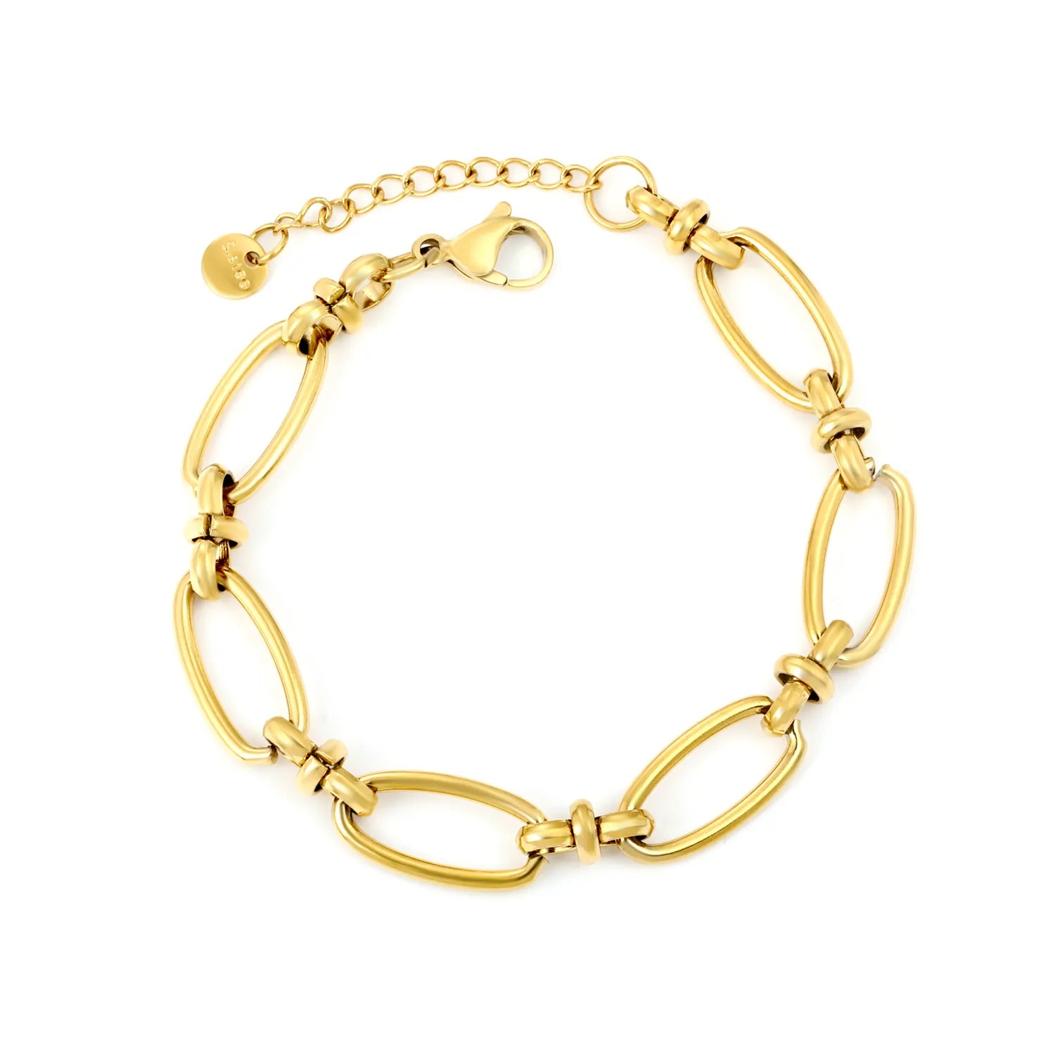 Gold-Plated Stainless Steel Oval Link Bracelet Adjustable 18+3cm Wholesale Low MOQ