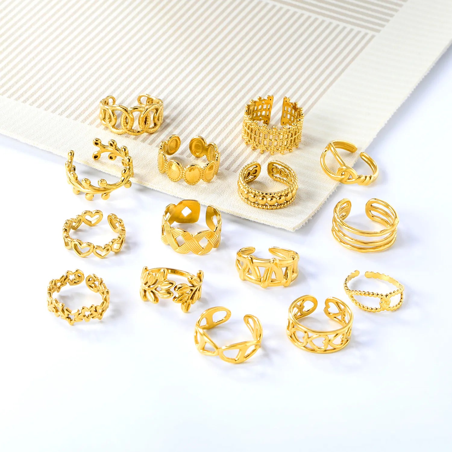 18k gold plated Adjust Size Stainless Steel Rings Wholesale (MOQ 12+) | Hypoallergenic Fashion Rings 🌍 | Tarnish-Free
