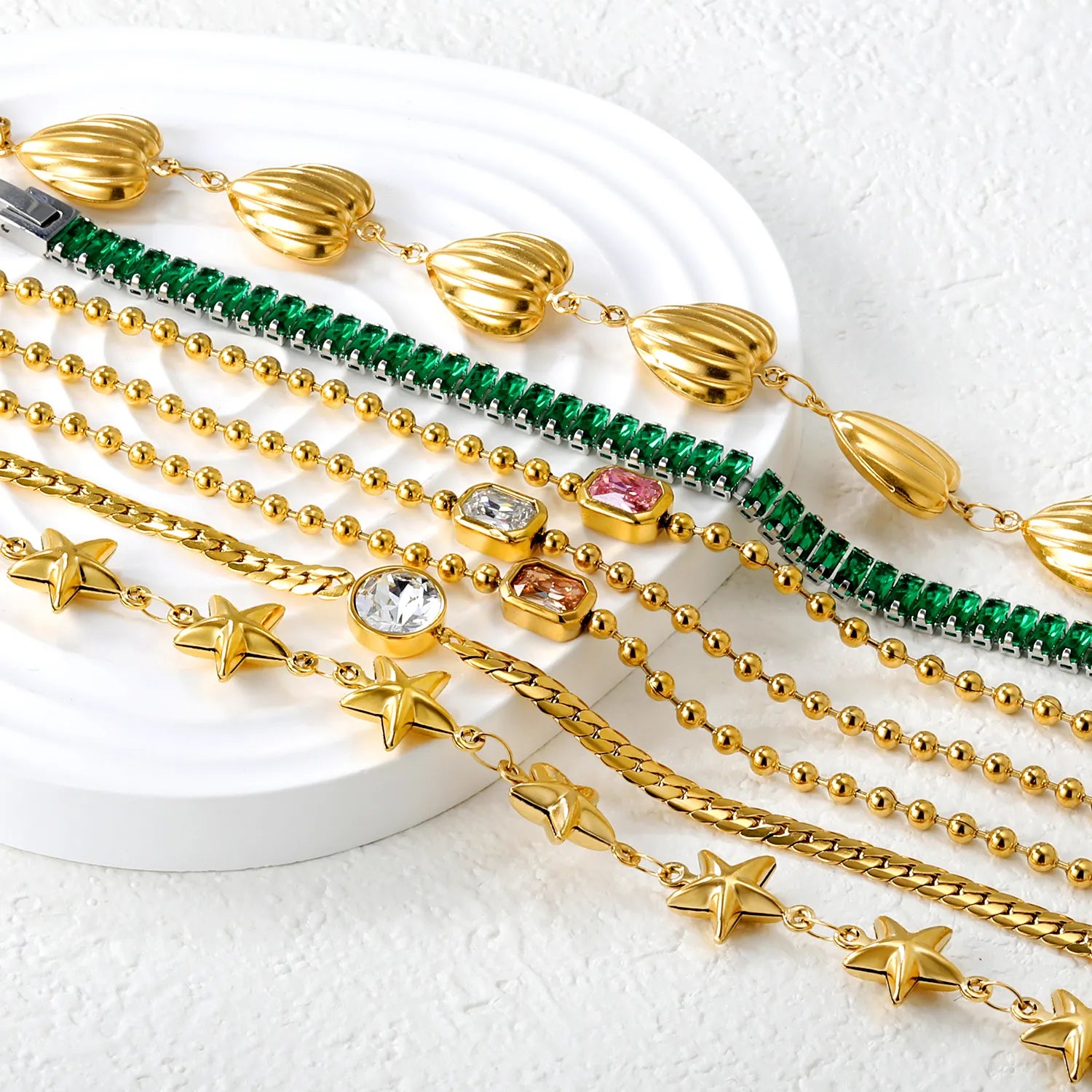 Elevate your jewelry collection with our 18K gold-plated stainless steel bracelets - the perfect blend of affordability and luxury for fashion retailers. Start with just 12 pieces!