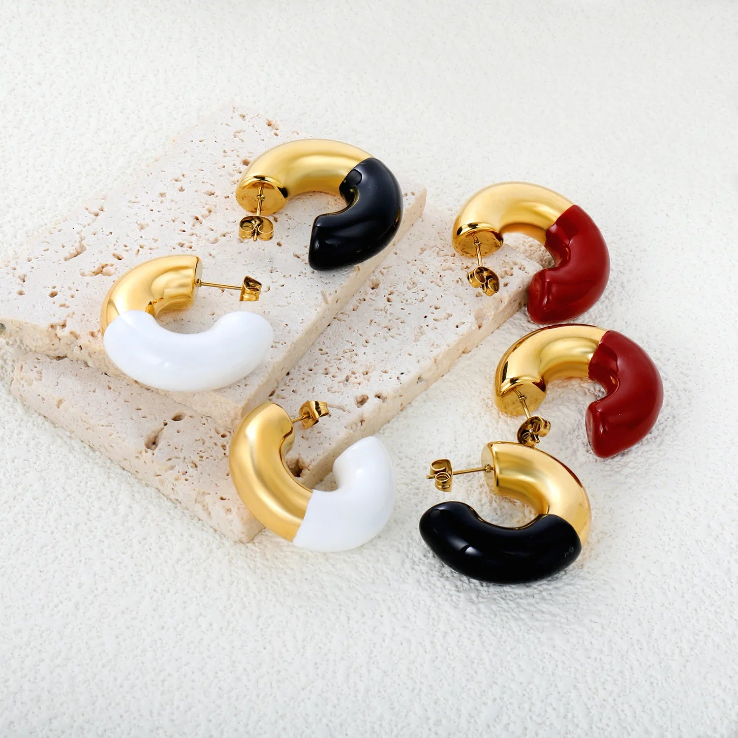 Gold Drip Enamel C-Earrings | 10.3x31.2mm Stainless Steel | White/Black/Red Wholesale