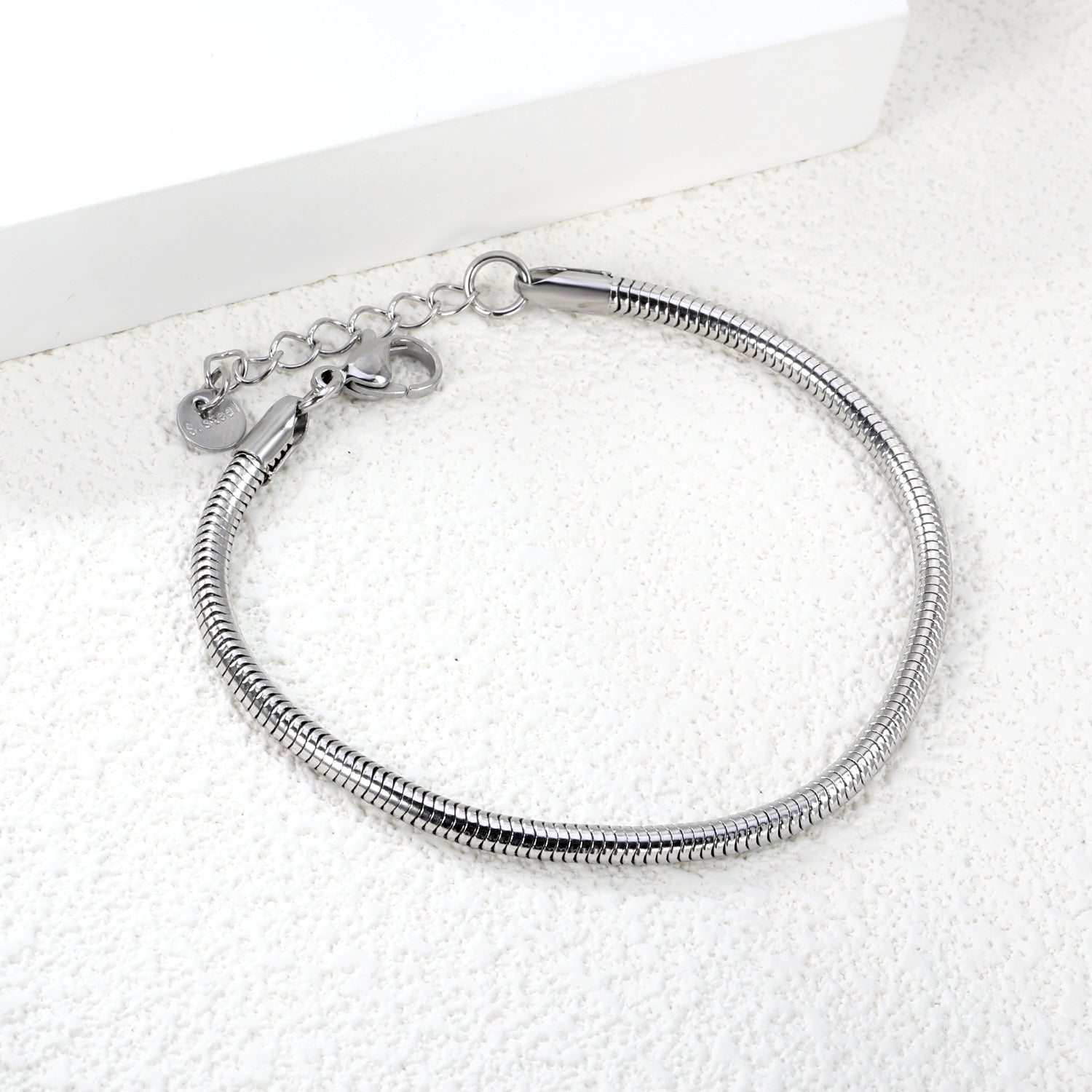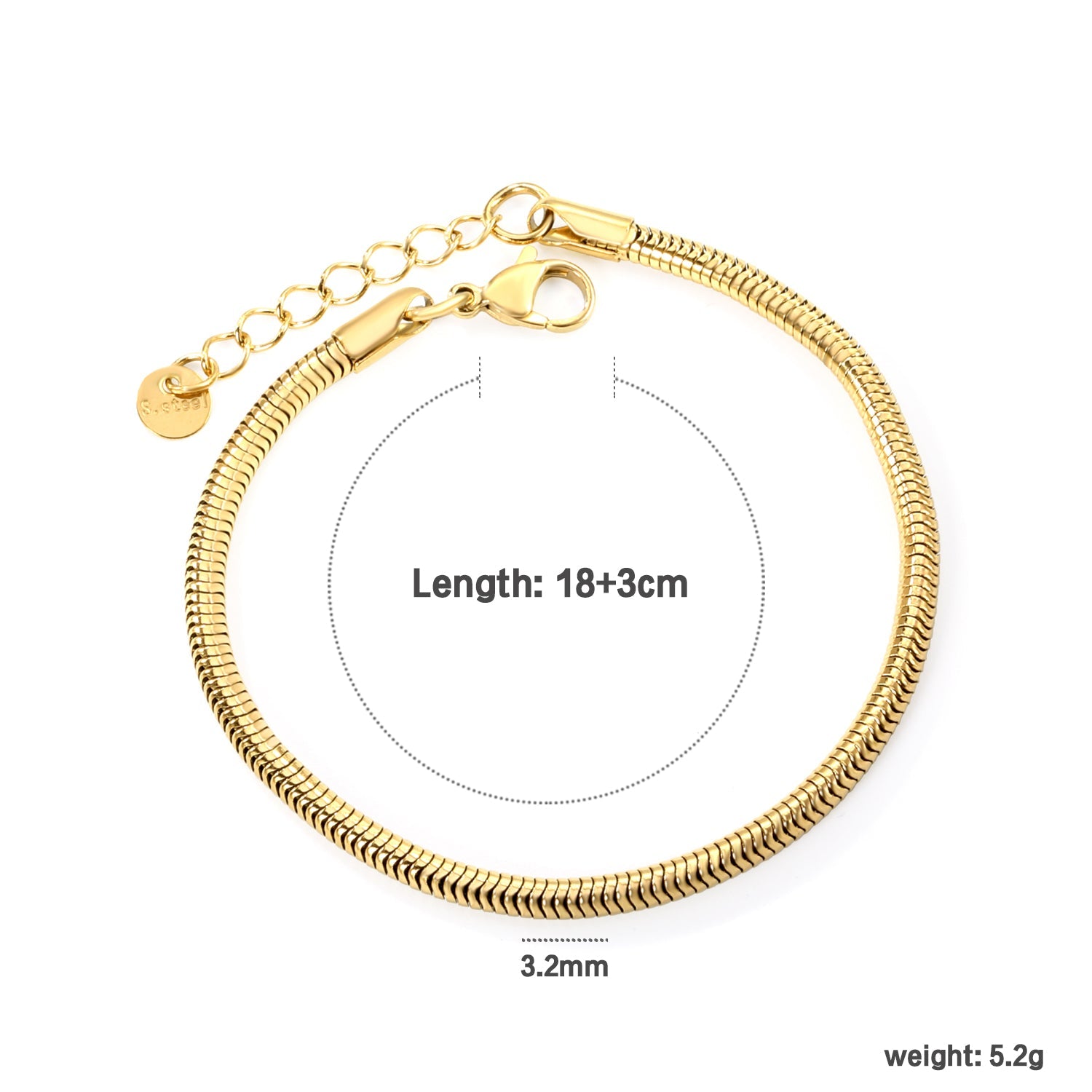 3.2mm Round Snake Bone Chain Bracelet 18+3cm+6mm Round Tail Plate Steel/Gold