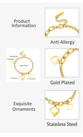 Heart-Shaped Accessory + 2 Heart-Shaped Hollow Accessories Bracelet