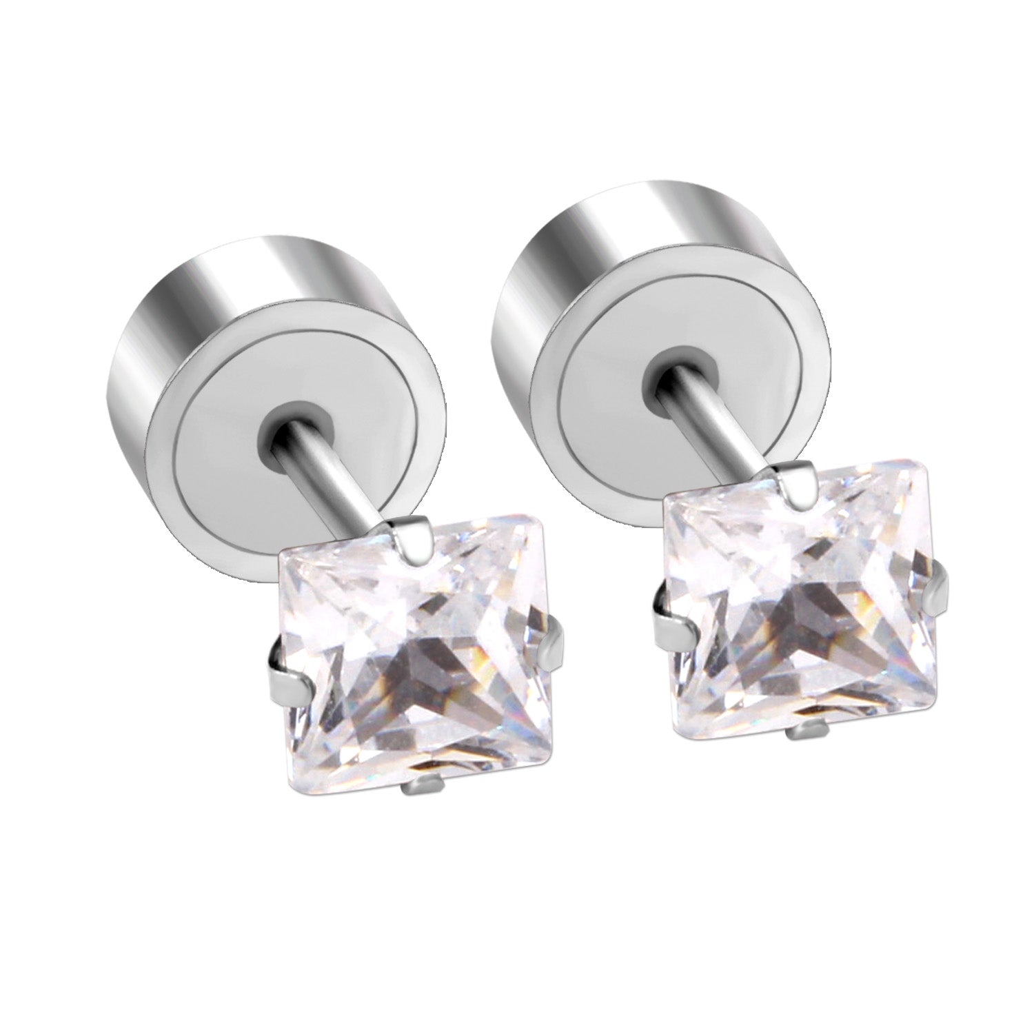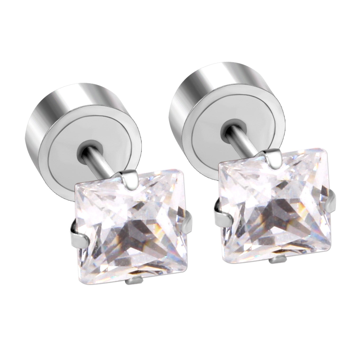 3mm - 5mm Steel Color Square Diamond Tap Plug Earrings