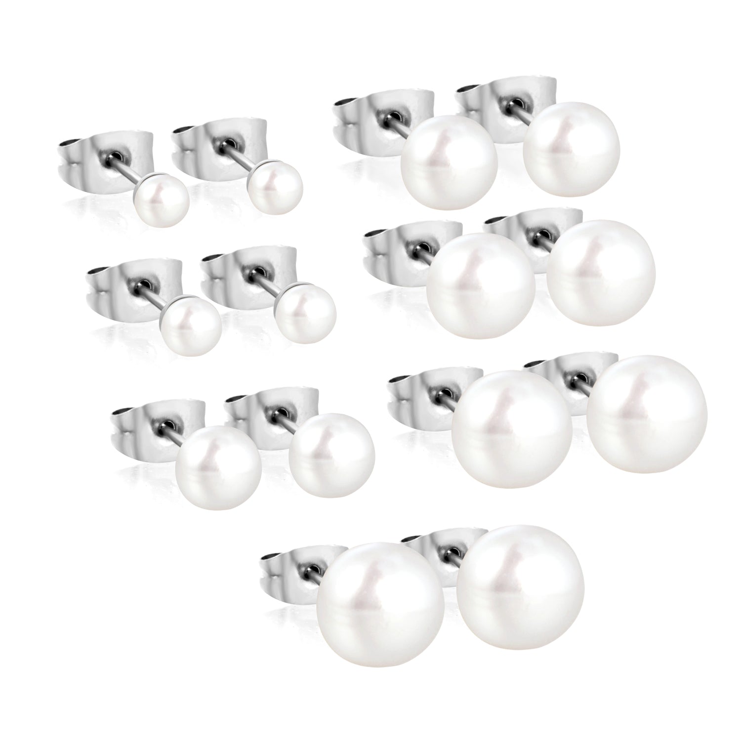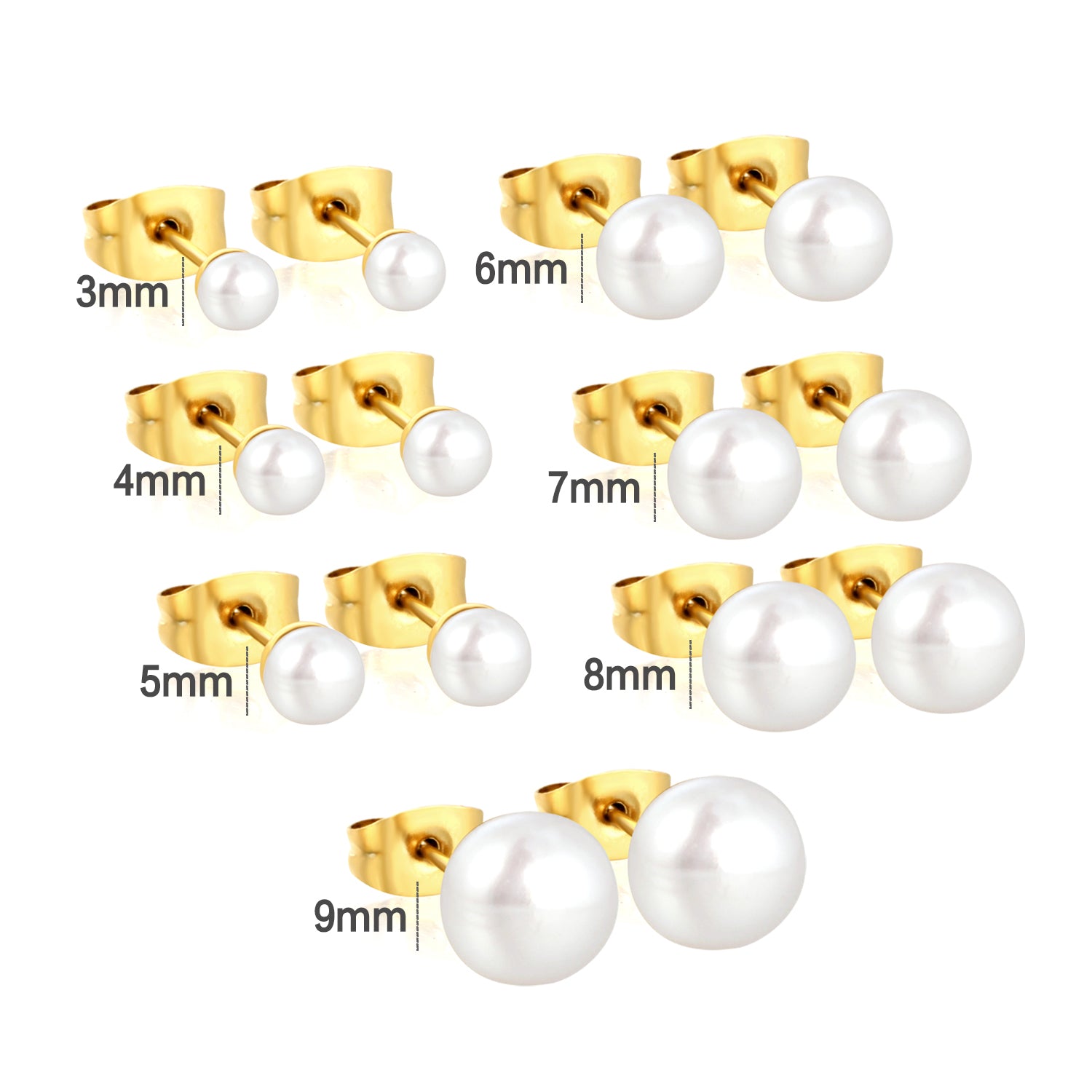 Women's Freshwater Pearl Stud Earrings - 3mm Real Pearl Set in 304 Stainless Steel Post, Hypoallergenic Ear Jewelry (Gold, Silver )