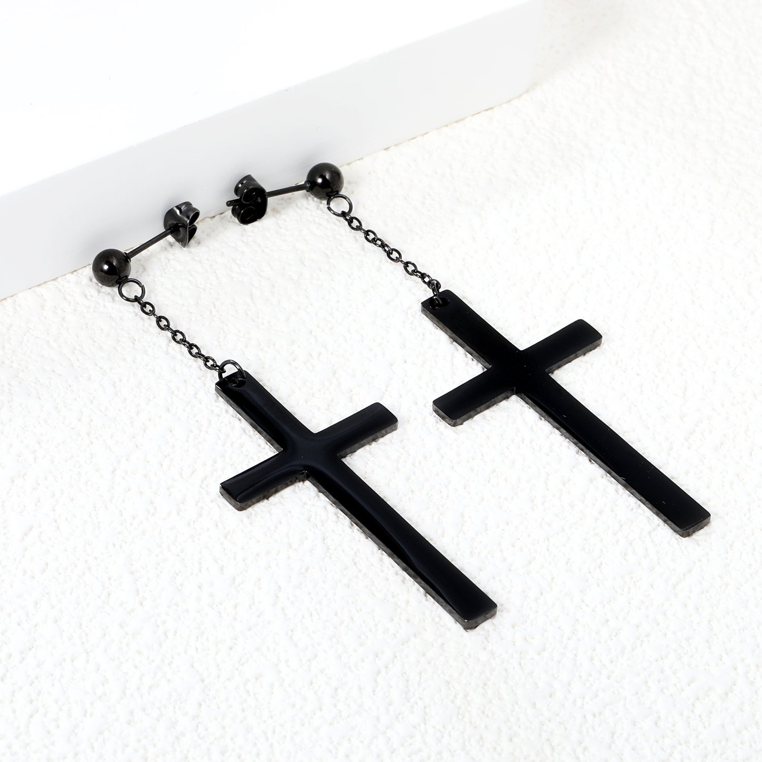 5mm Steel Beads + 20mm Chain + 50*25.4mm Cross Earrings