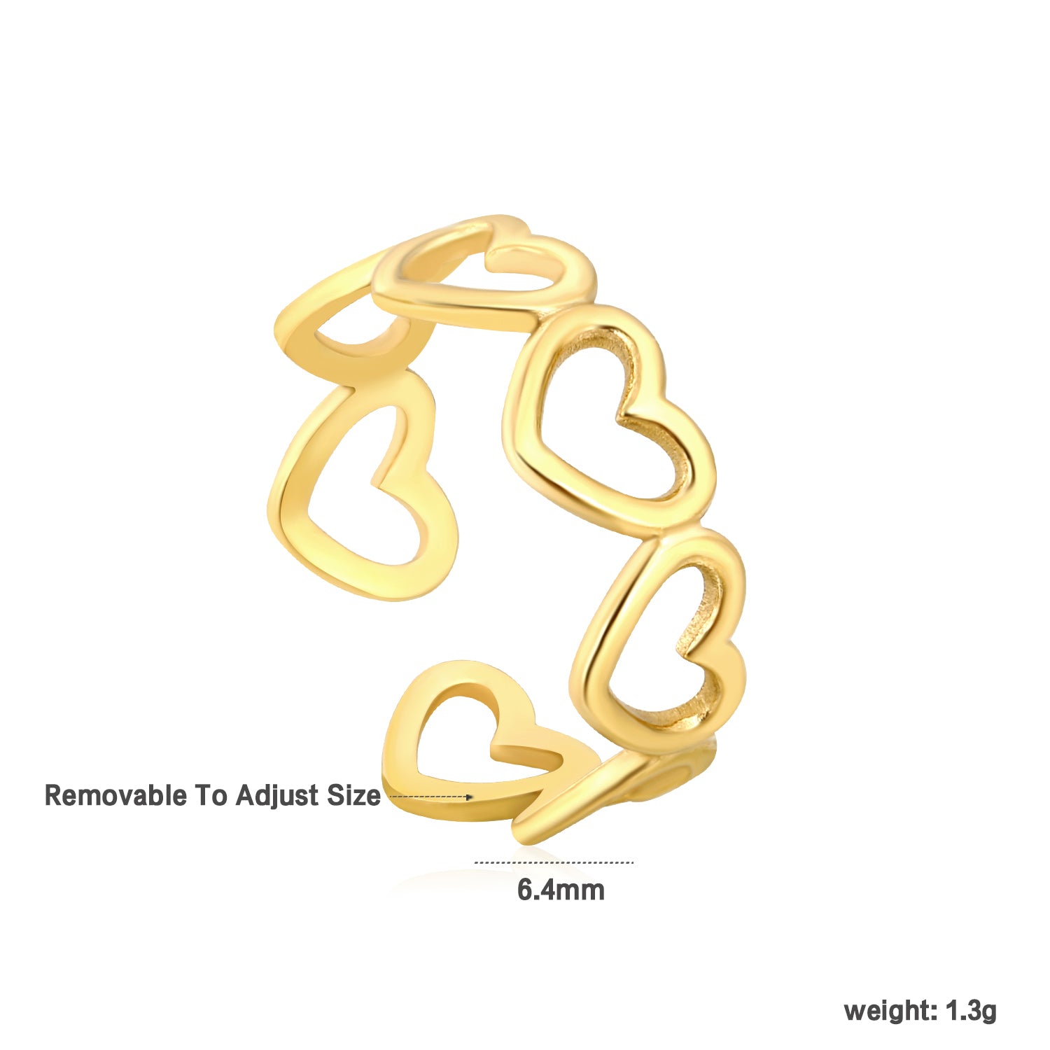 6.4mm 18K Gold Plated Stainless Steel Ring Hollow Heart Shaped Finger