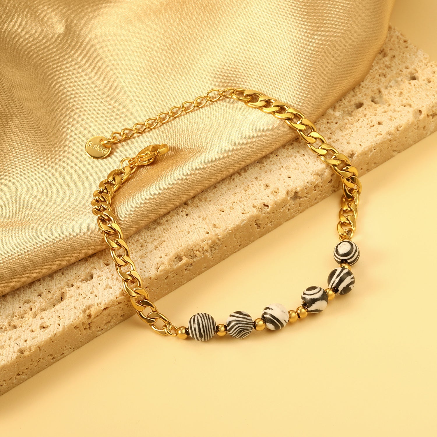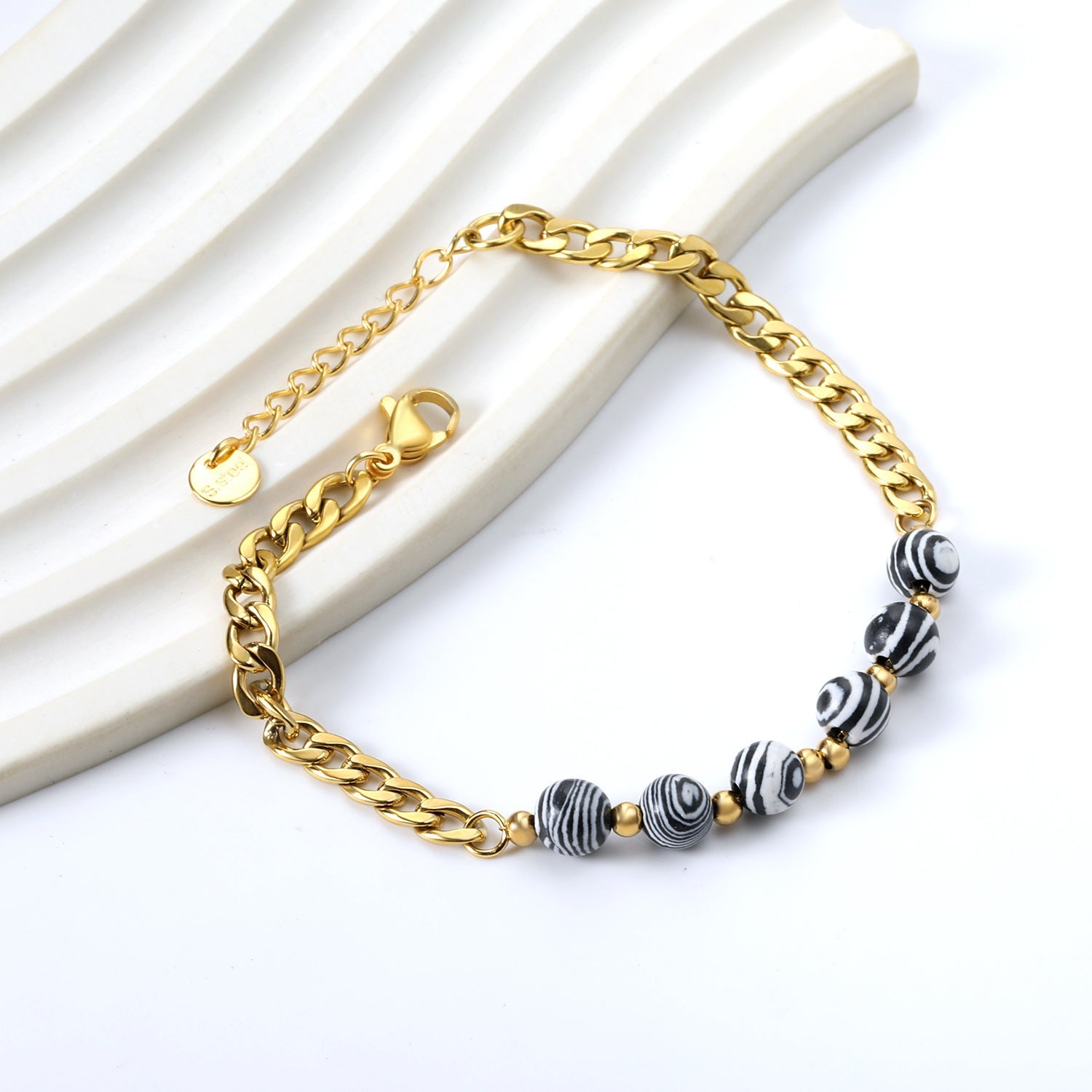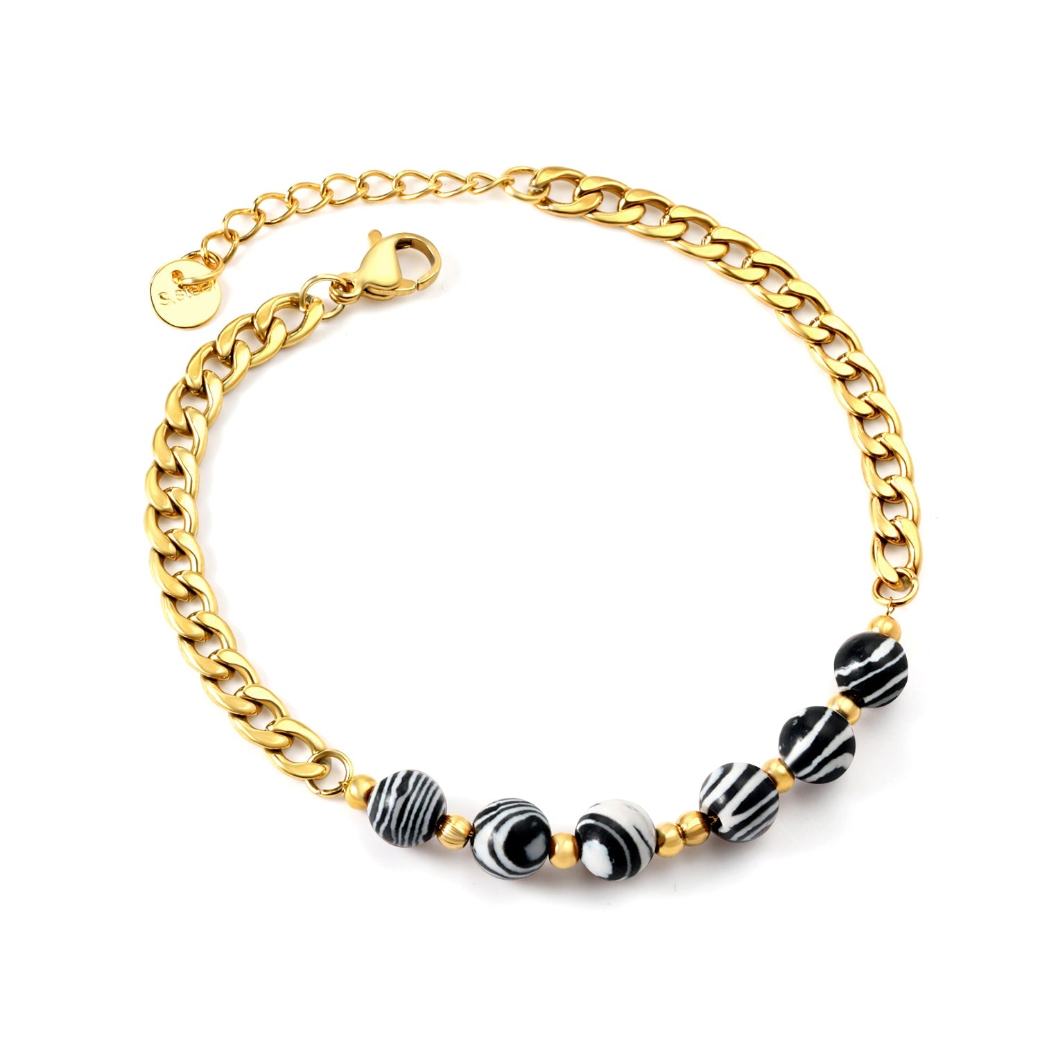 Expertly crafted with 6 natural stone bracelets in black and white, this set adds a touch of elegance to any outfit. With a comfortable 18+3cm length, these bracelets are perfect for everyday wear. Experience the benefits of natural stones while making a fashion statement.