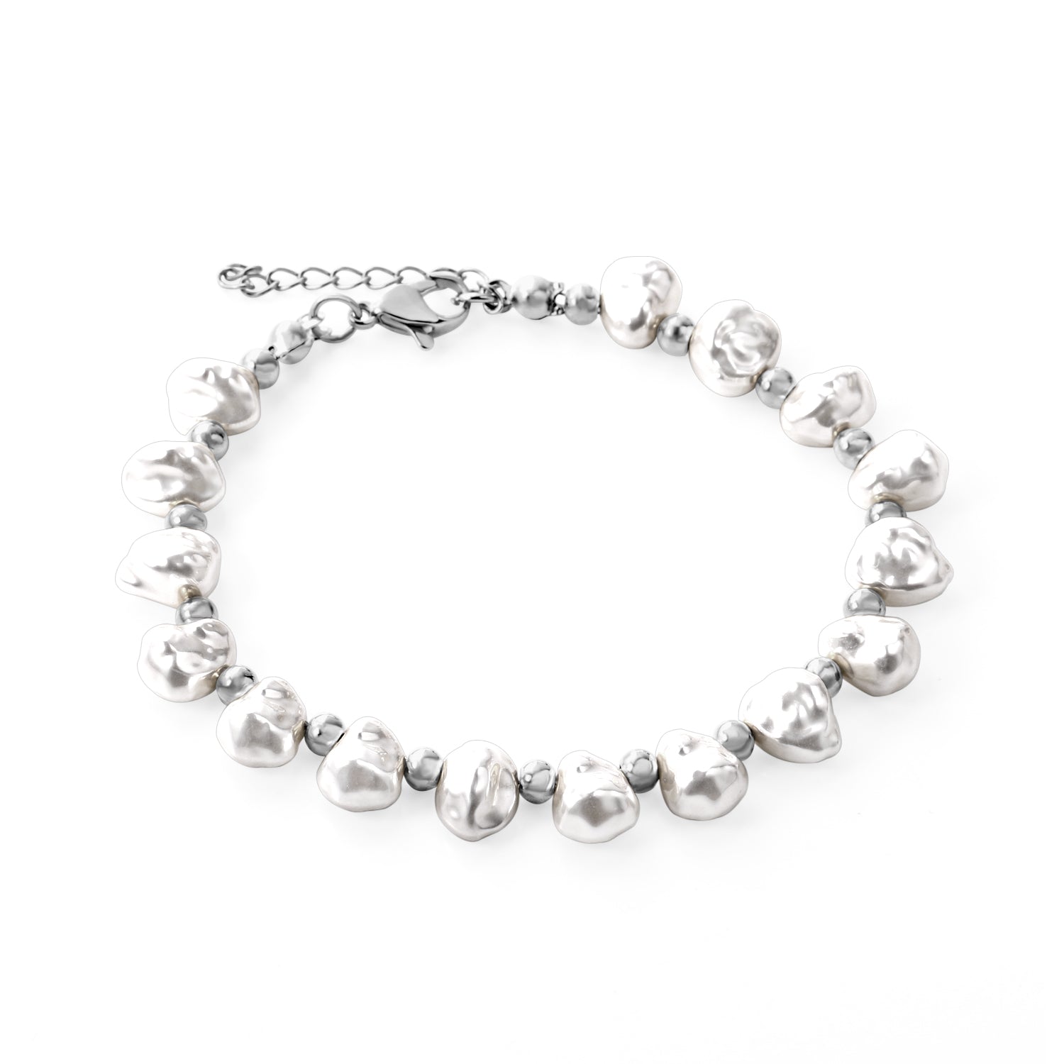8x9mm Shell Alien Bracelet Spacer Beads 4mm 18+3cm+Round Plaque Steel/Gold