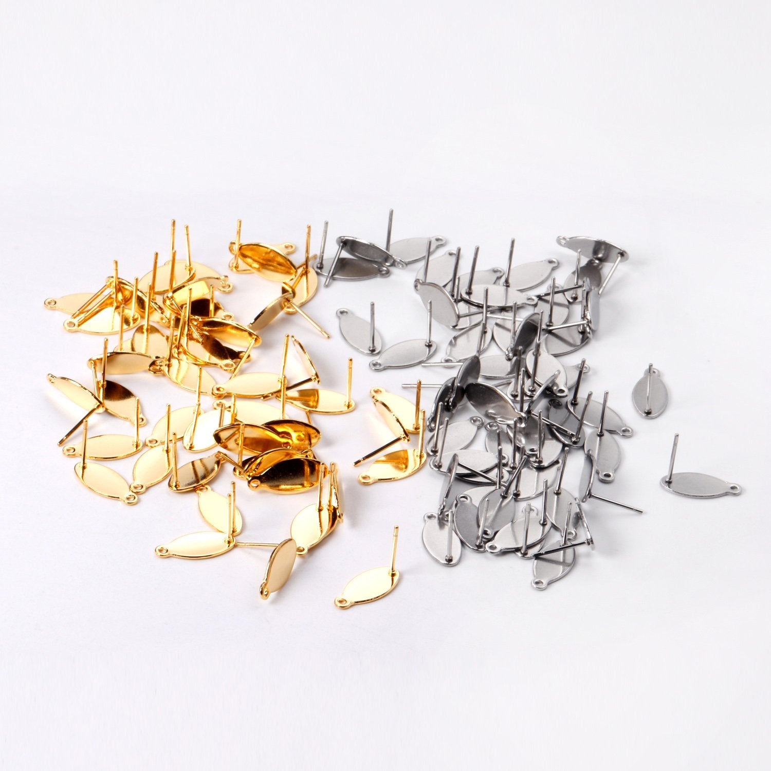 ASON 100 Pcs/Lots Oval Earring Accessories Stainless Steel Anti-allergy Base Setting Connector For DIY Jewelry Making Supplies