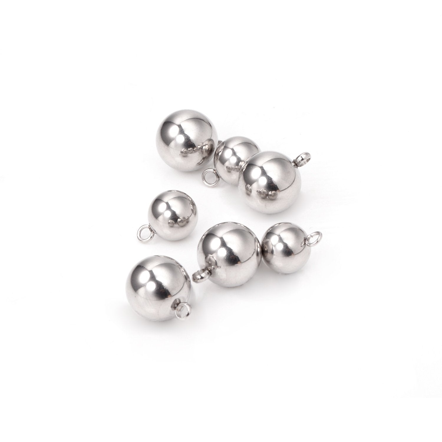 ASON 100pcs 8mm 10mm Stainless Steel Ball with Ring Jewelry Finding Pendant Charm Steel Beads for DIY Jewelry Making