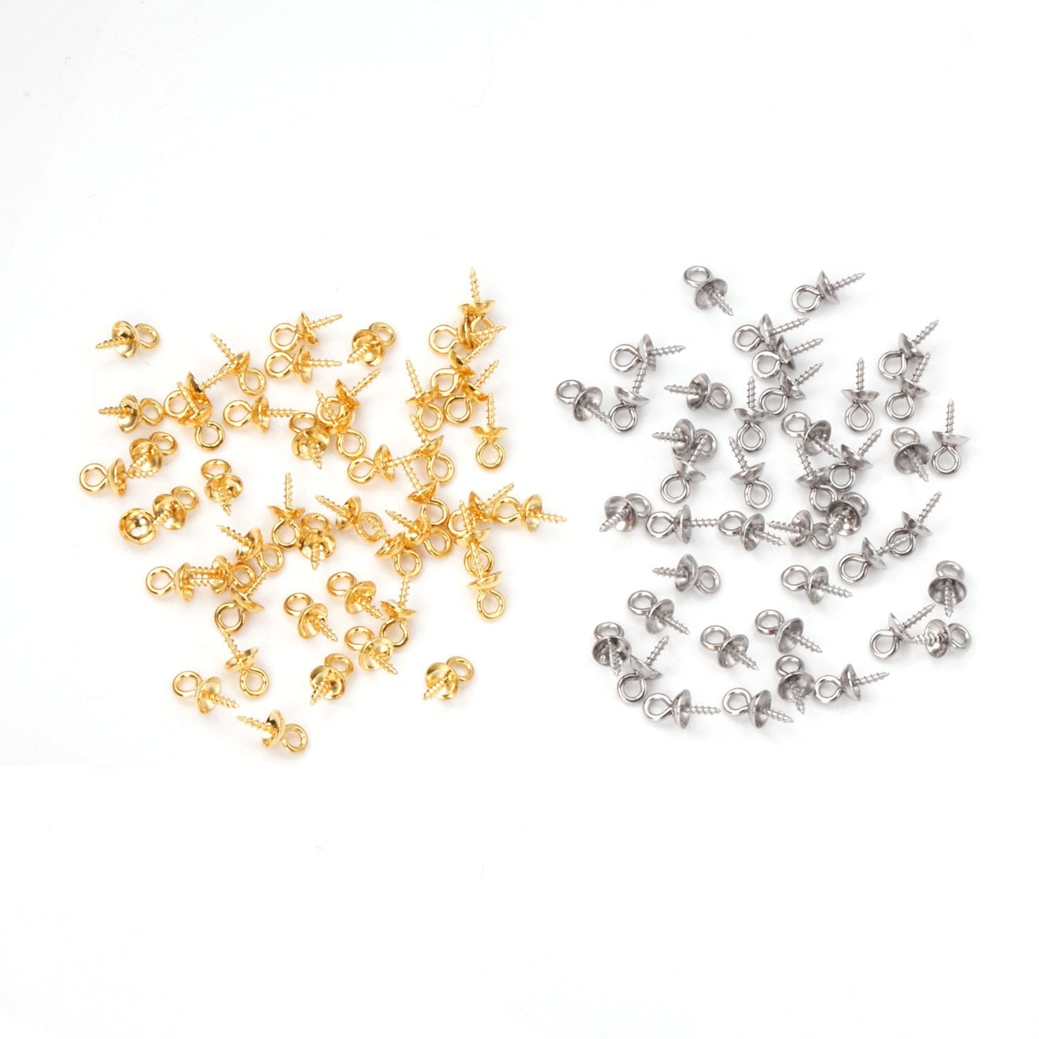 ASON 100pcs/lot Gold/Silver Color Stainless Steel Screw Eye Pin Pearl Pendant Charms Connector for DIY Jewelry Making