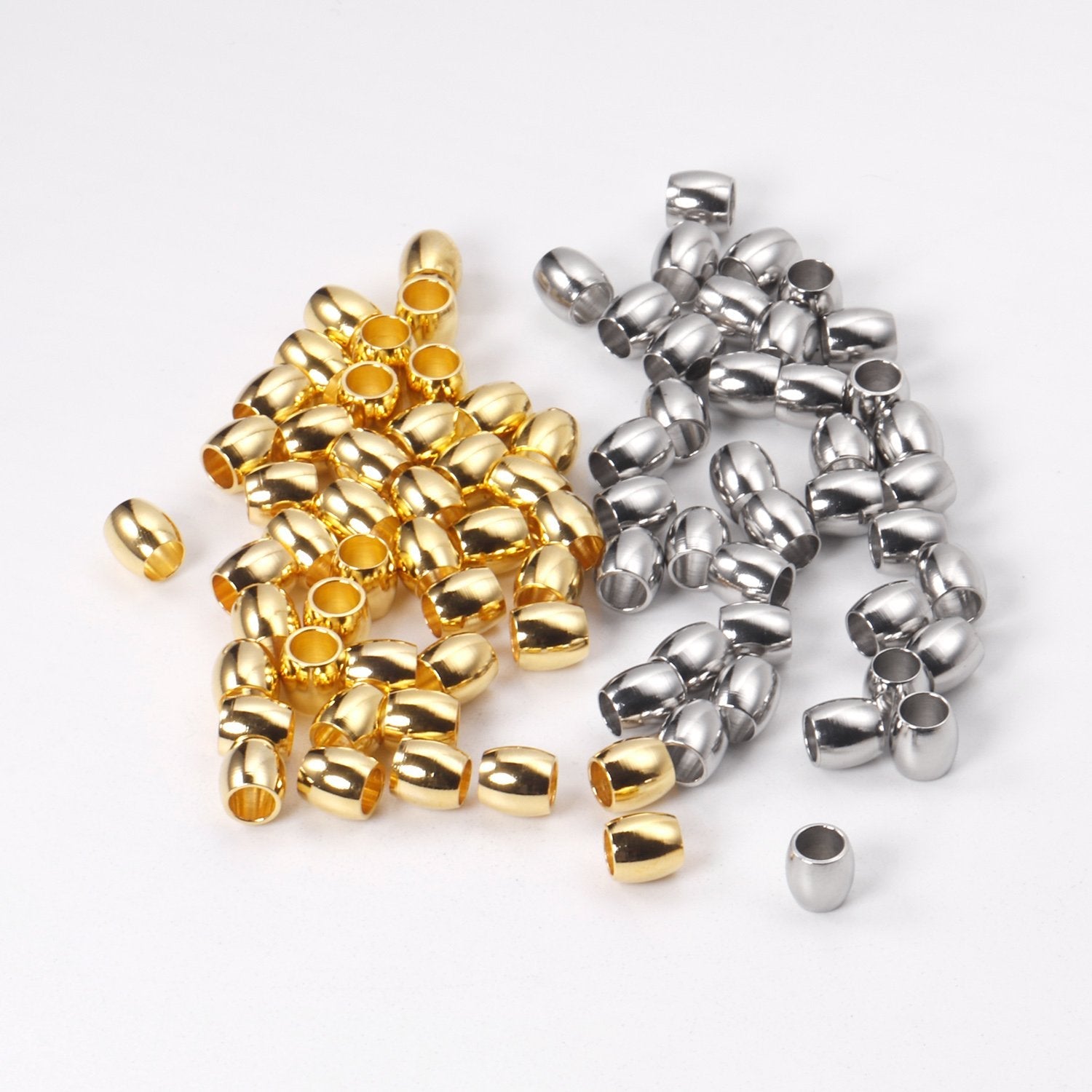 ASON 100pcs/Lot Spacer Beads Loose Ball Oval 316L Stainless Steel Gold Silver Color For DIY bracelet Necklace Jewelry Making