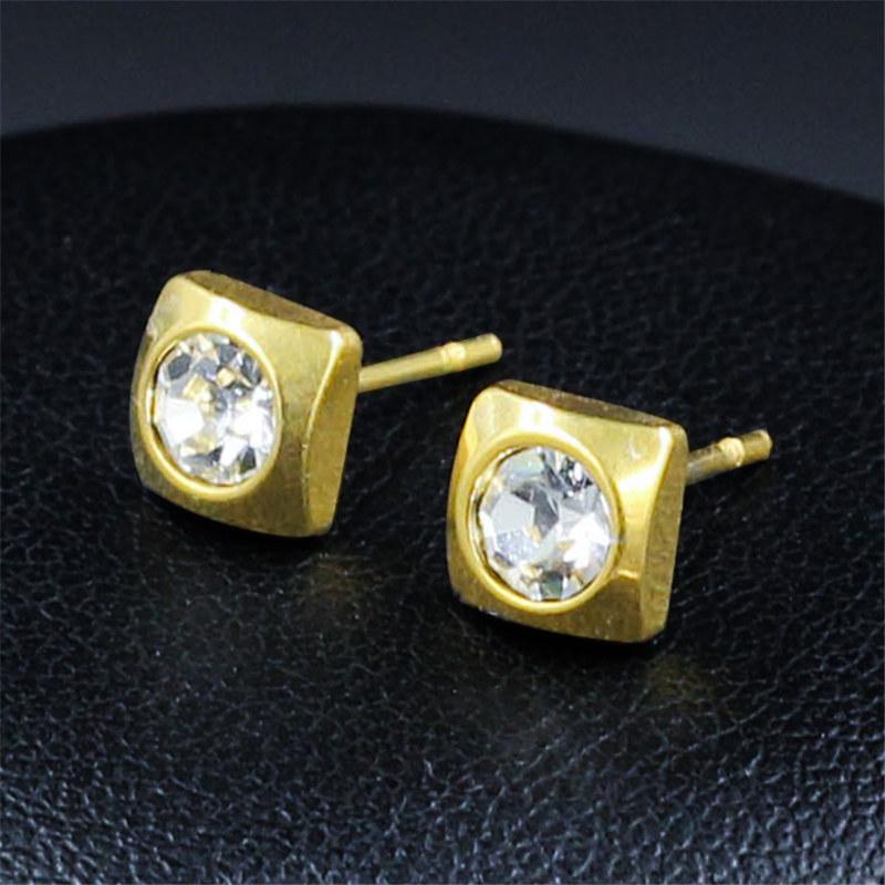 ASON Classic Style Square Round AAA Cubic Zirconia Gold Color Piercing Stud Earrings Set For Women 2022 Brinco Daily Wear