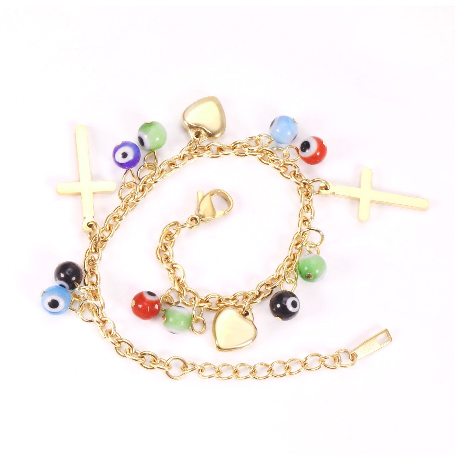 ASON Fashion Pendants Cross Eyes Heart Bracelets Gold Color Stainless Steel Link Chain Bracelet for Women Bohemia Jewelry