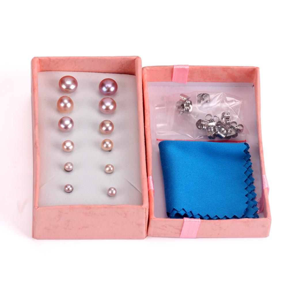 ASON Mix Size Earring Set Stainless Steel 6pairs/box Pink White Freshwater Pearl Stud Earrings Female Bioux Daily Wear
