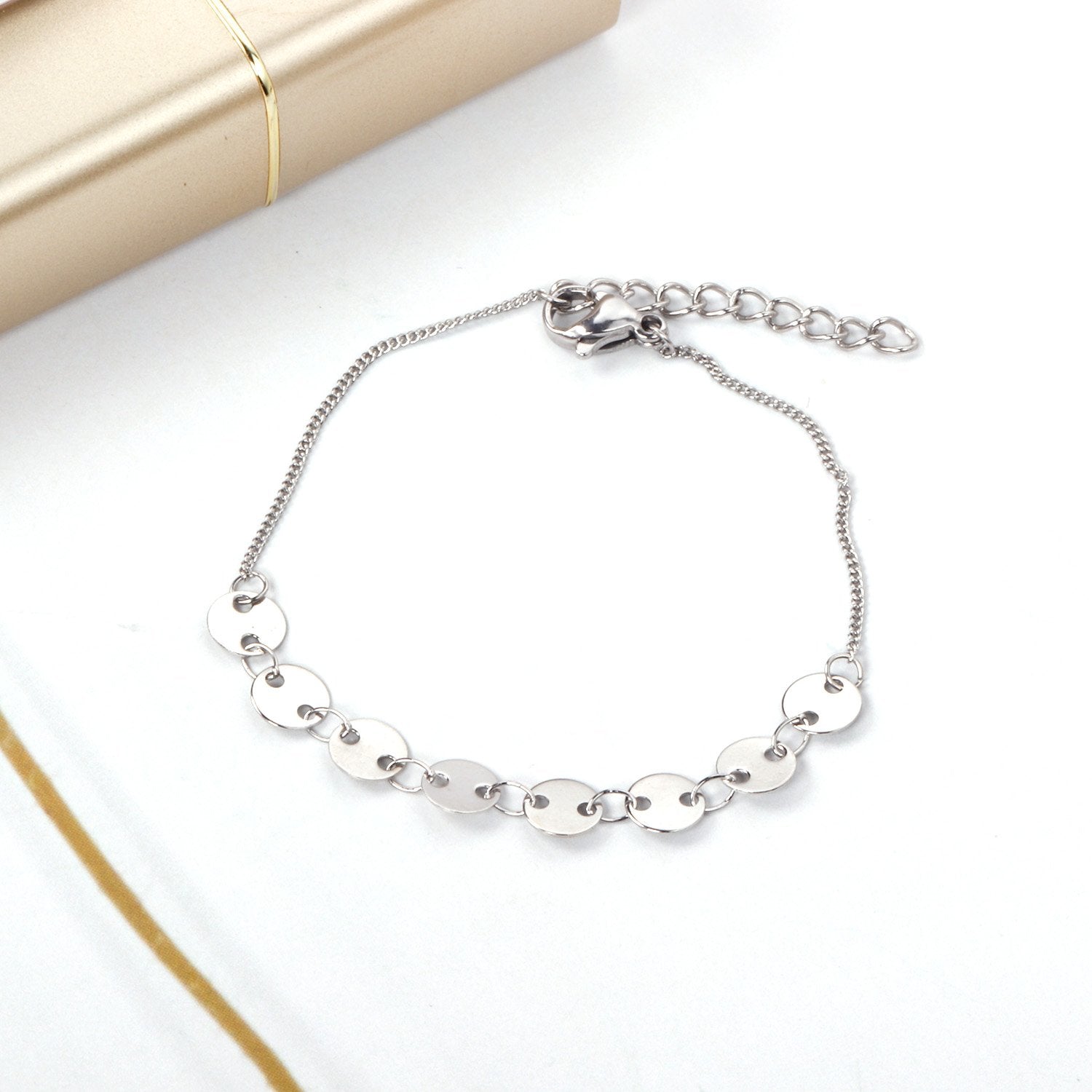 ASON Round Disc Charm Trendy Bracelet 316L Stainless Steel Bangle with Extender Women Fashion Jewelry Gift Accessories