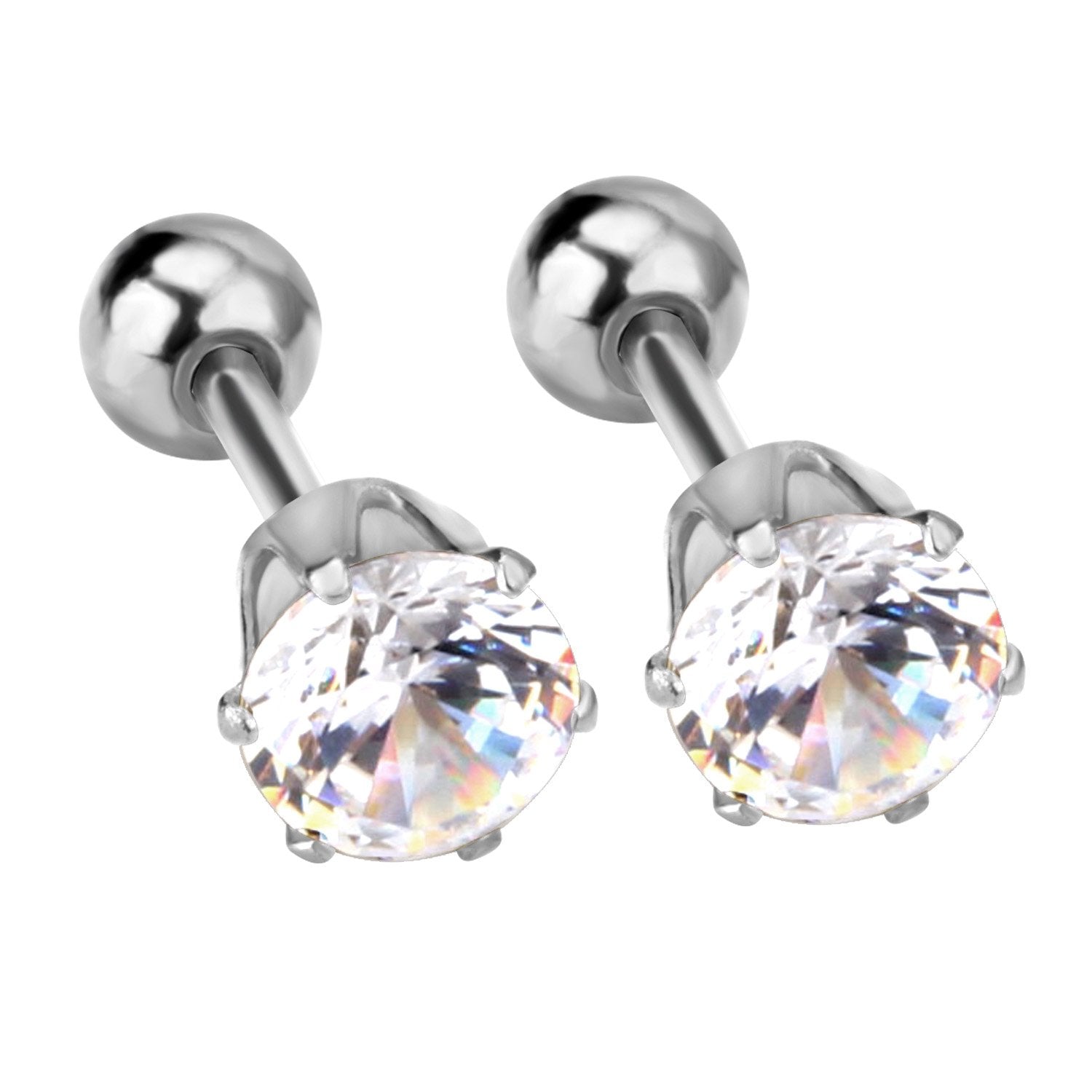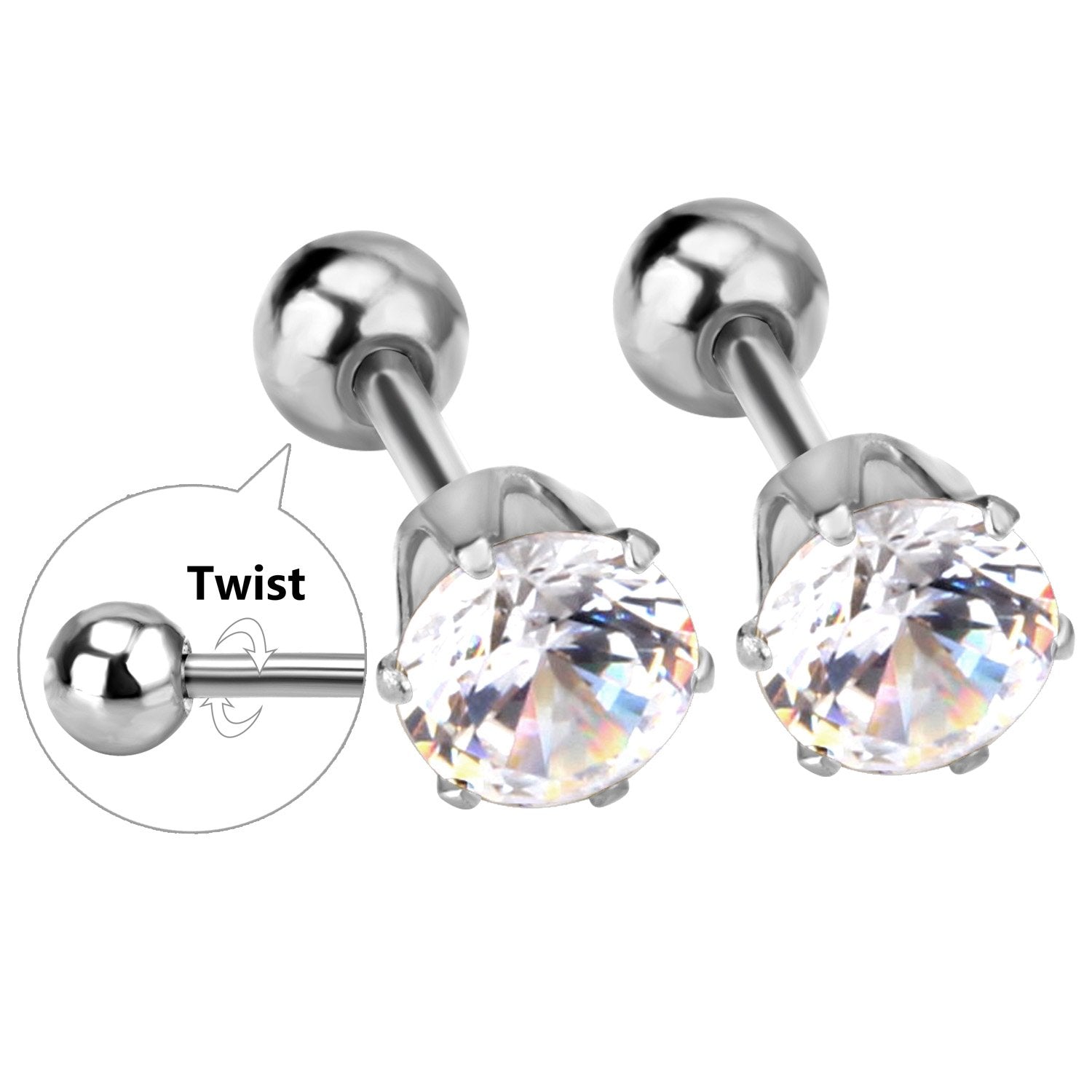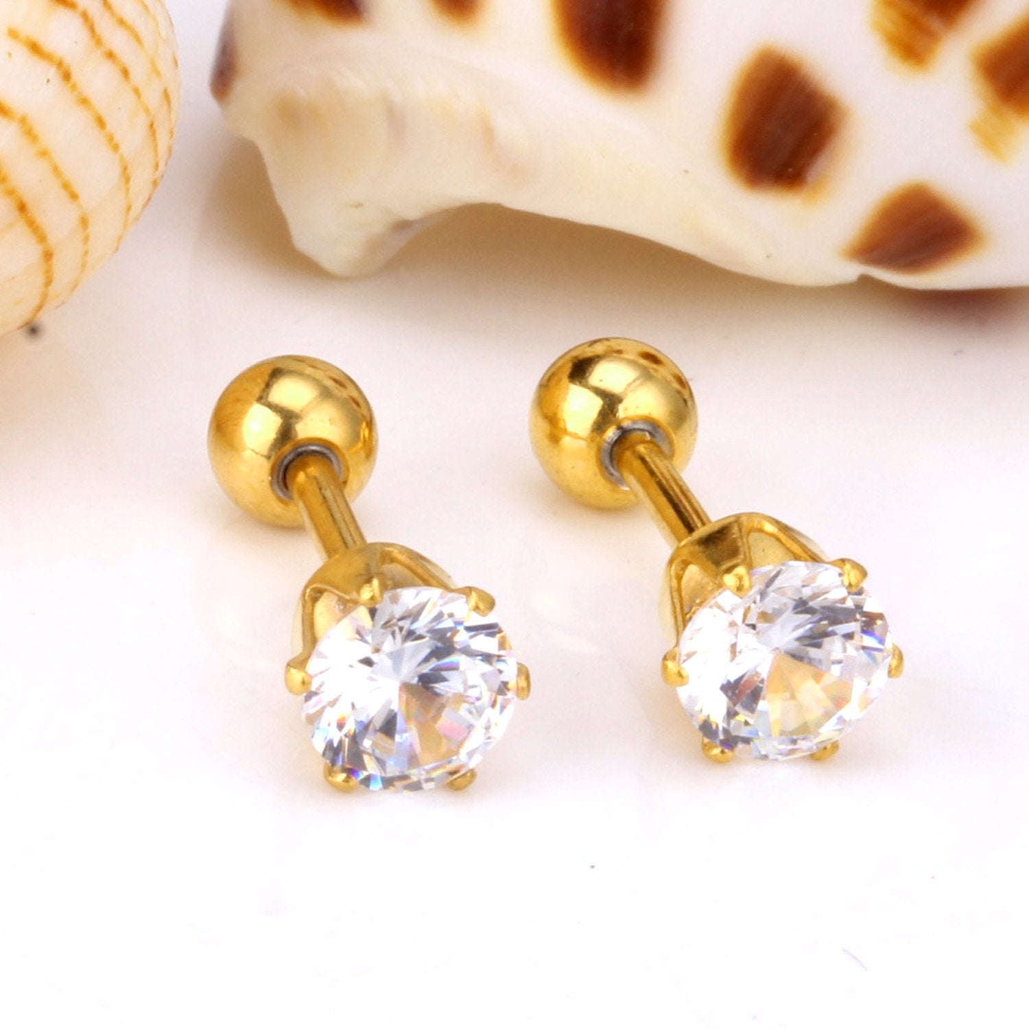 ASON Size 3mm/4mm/5mm Gold Color Cubic Zirconia Round Screw Piercing Stud Earring Stainless Steel Earring For Women Jewelry