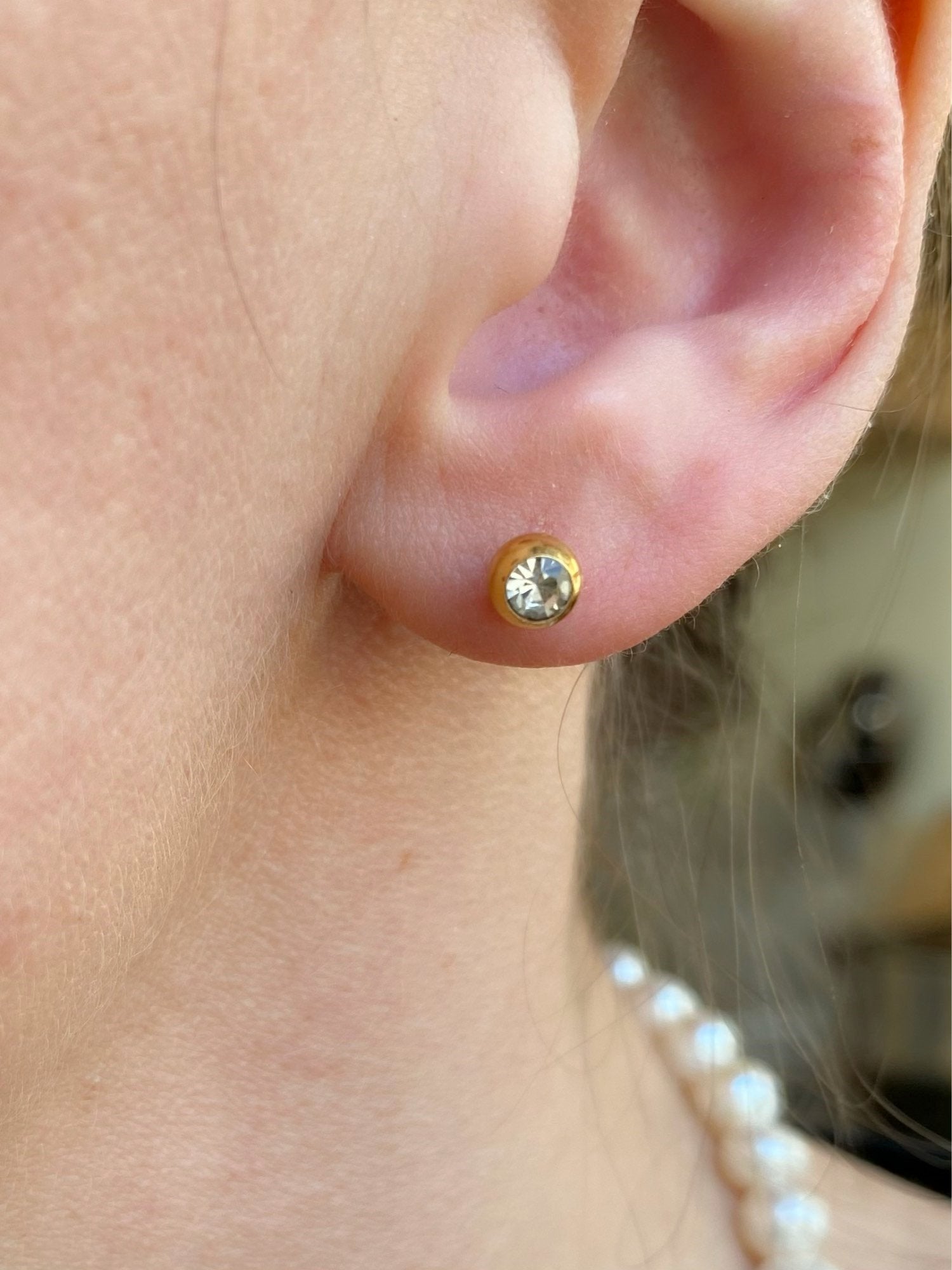 ASON Surgical Round Shape Cubic Zirconia Screw Stud Earrings Gold Color Stainless Steel for Kid/Women/Girl Jewelry Priecing