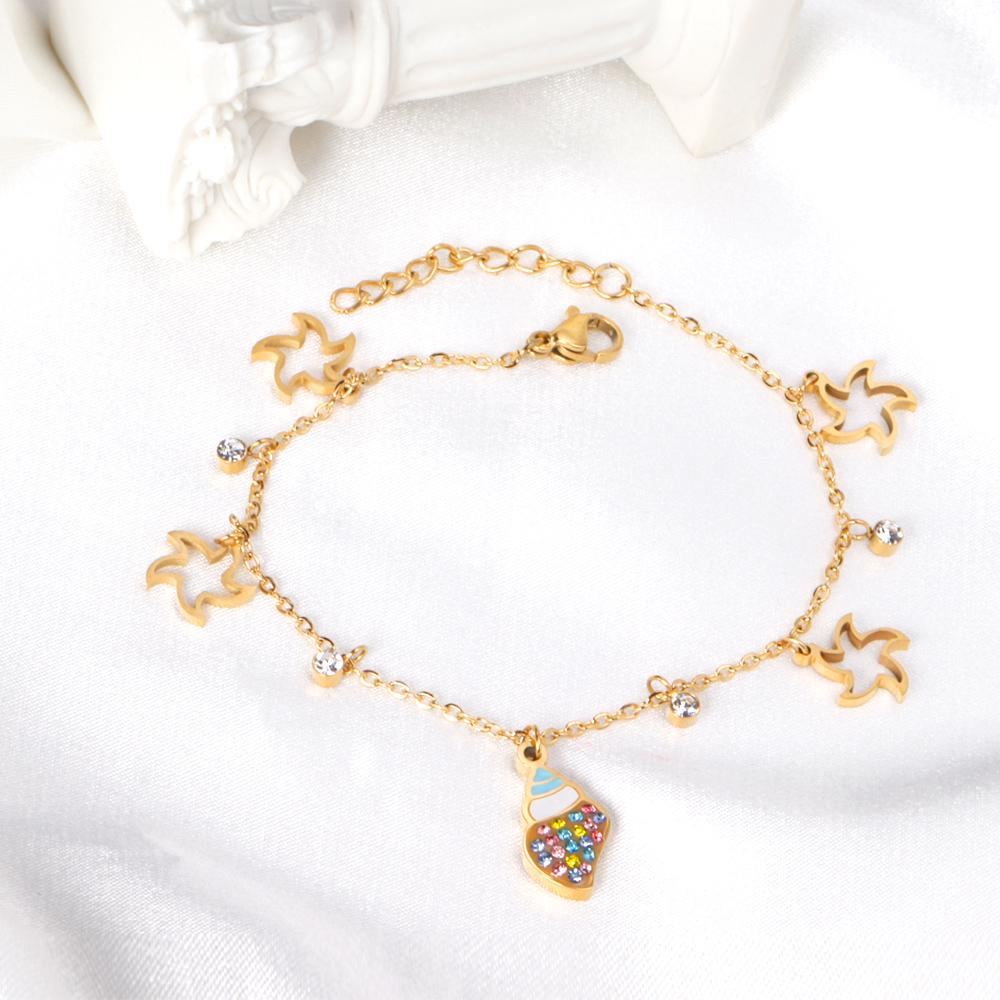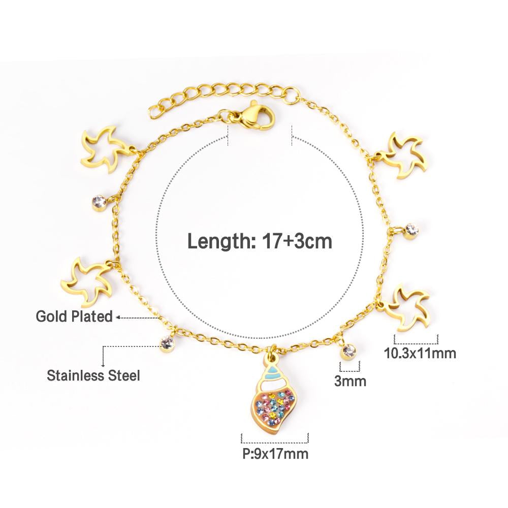 ASON Trendy Conch and Star Charm Bracelet Stainless Steel Bangle 17+3cm Fashion Jewelry for Women Party Gift Accessories