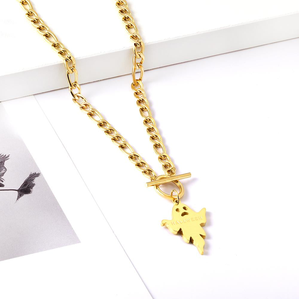 ASON Trendy Halloween Ghost Link Chain With OT Clasp Pendant Necklace Gold Color Stainless Steel For Women Men Jewelry Boho