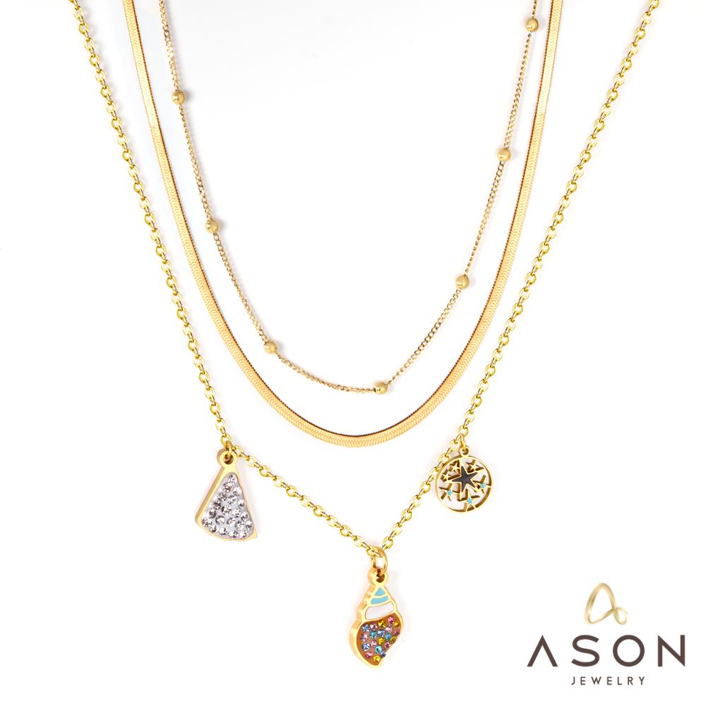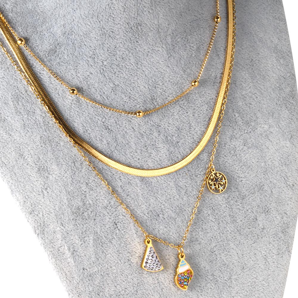 ASON Trendy Multi-layer Conch Star Pendant Necklace Gold Color Stainless Steel Snake Chain for Women Fashion Jewelry Gift
