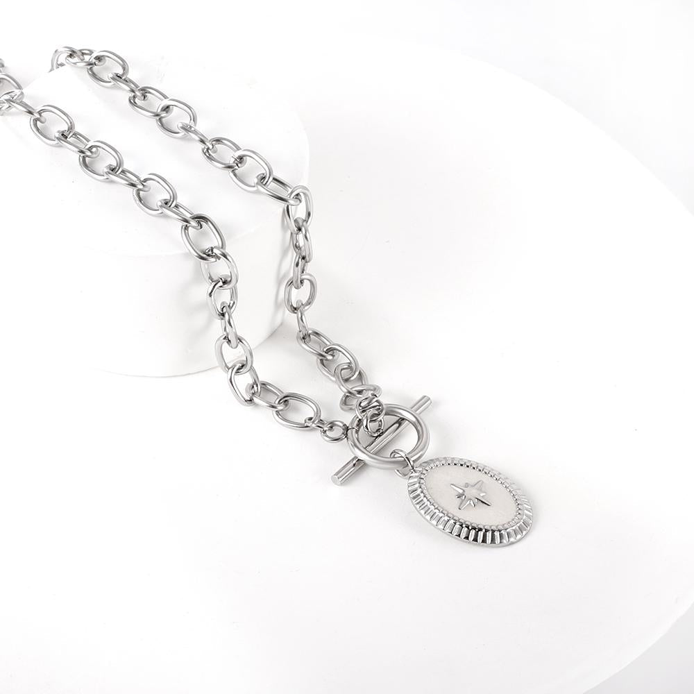 ASON Trendy Oval Lucky Star OT Clasp Charm Pendant Necklace Gold Color Stainless Steel For Women Jewelry Chokers Party Gift