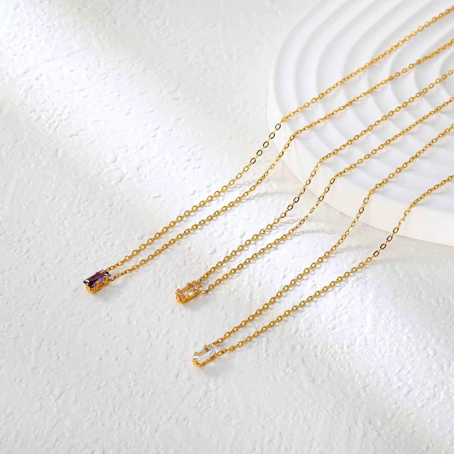 Bulk Gold Square Zirconia Pendant Necklace – 4.5*7.4mm (3 Colors) | 0.3mm Cross Chain | 40+5cm Adjustable | Wholesale Jewelry for Retailers