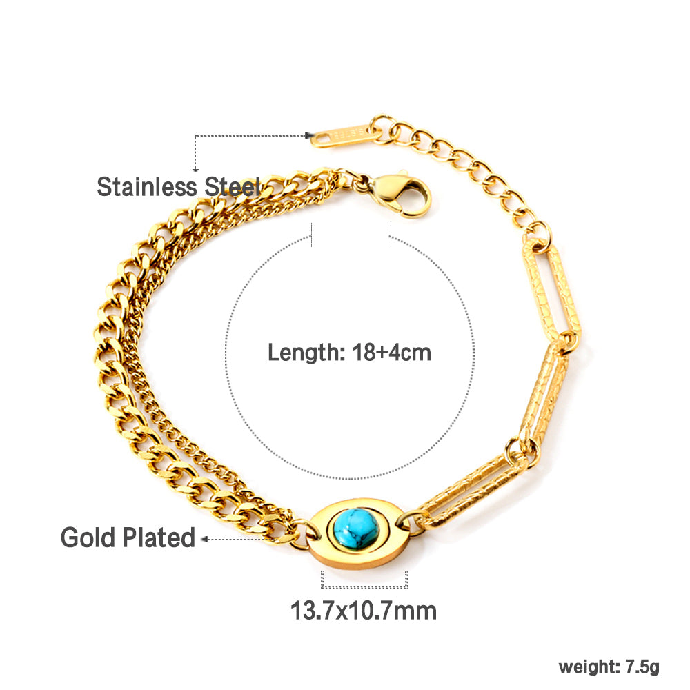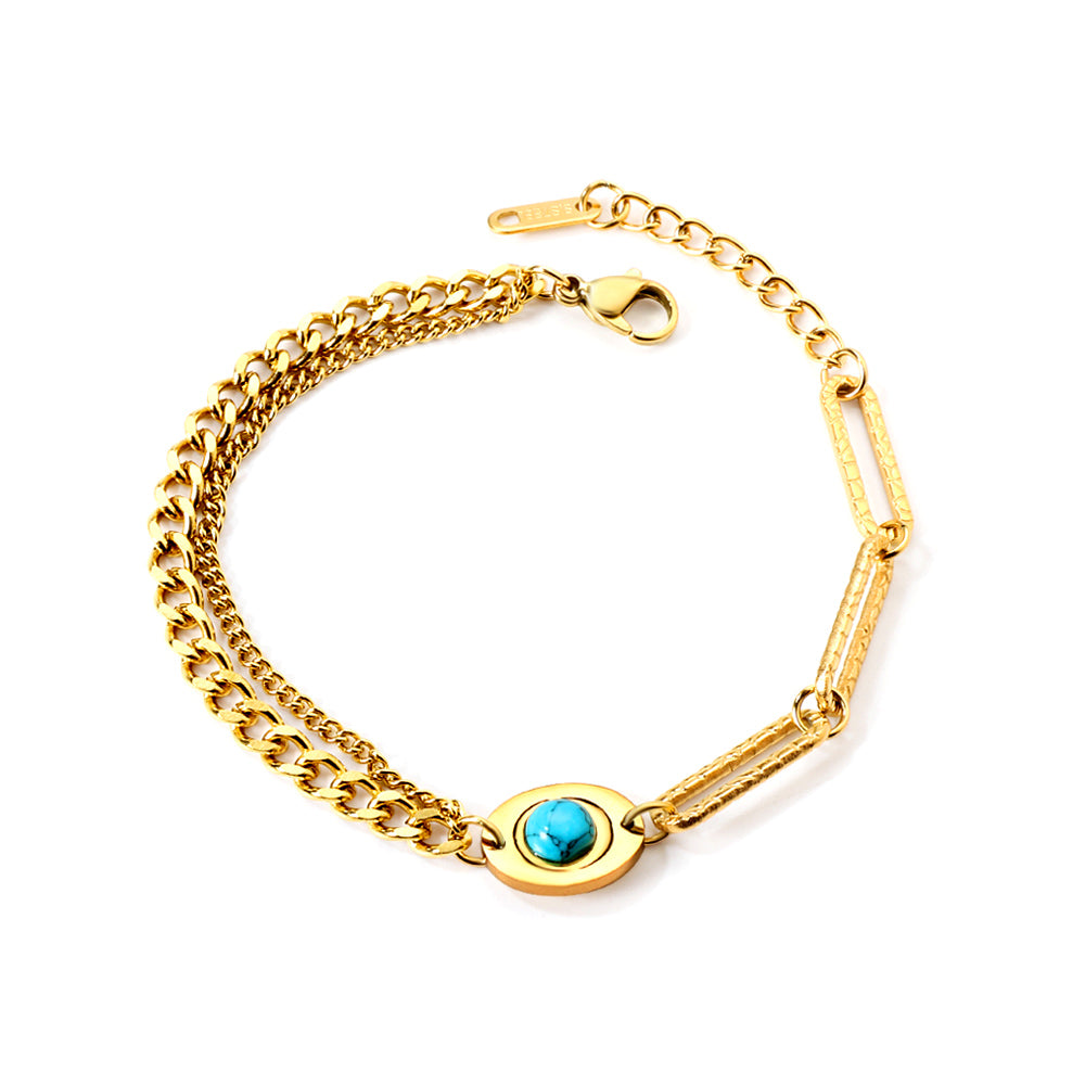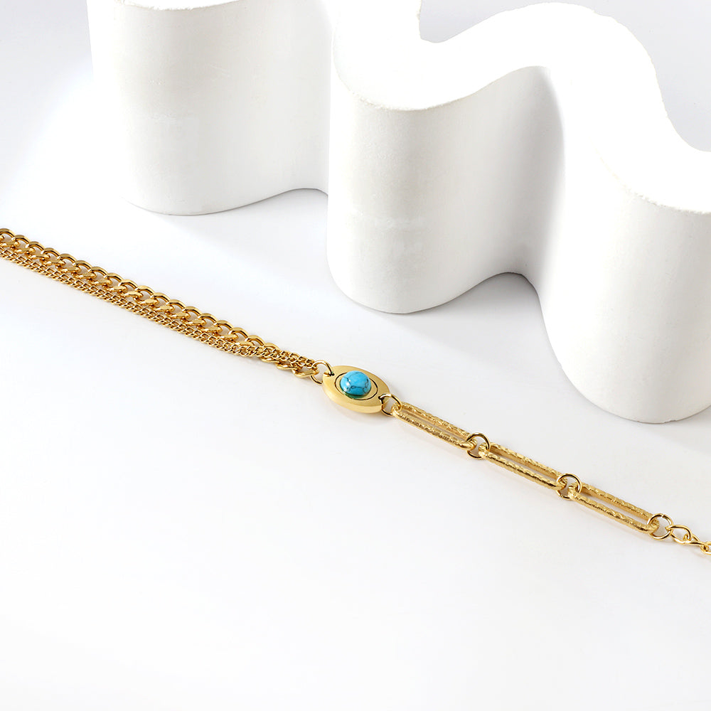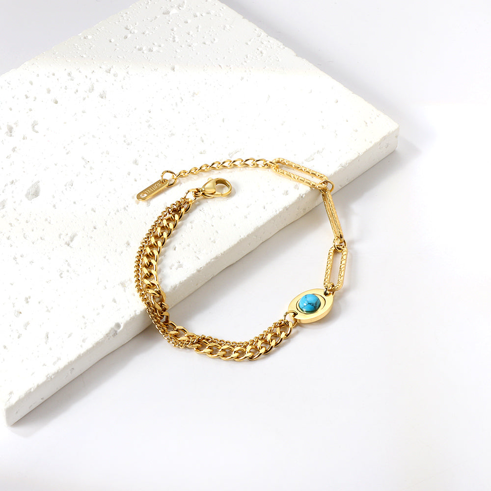 Round blue turquoise stone accessories + half double double bracelet 18+4cm gold