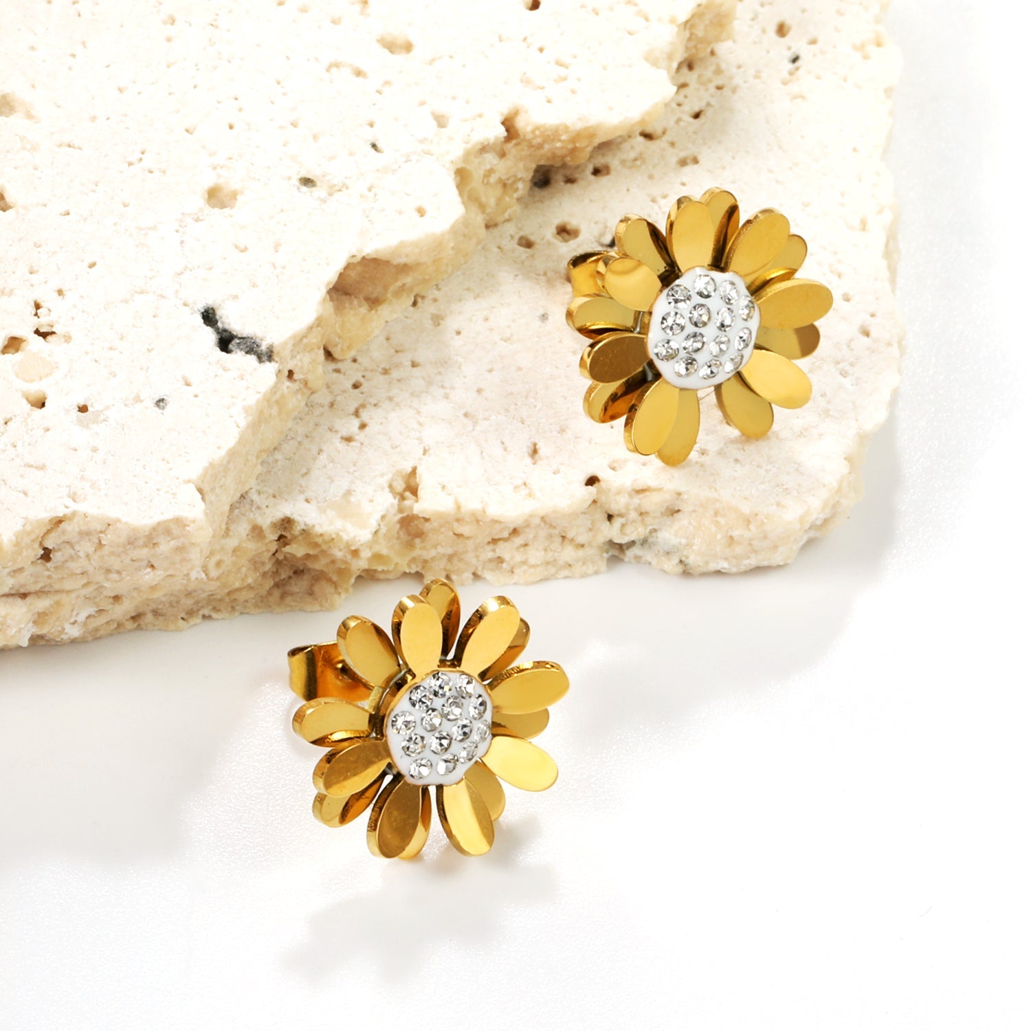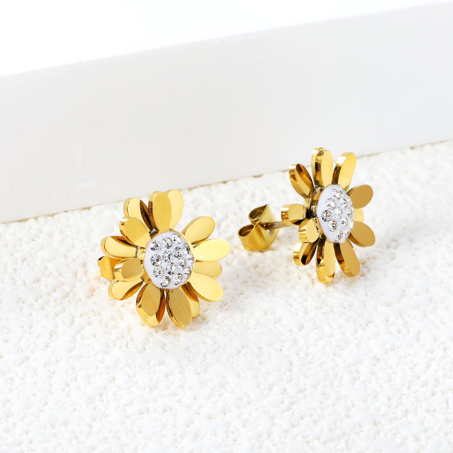 Daisy with White Clay White Diamond Earrings 14.8*14.8mm Gold Color