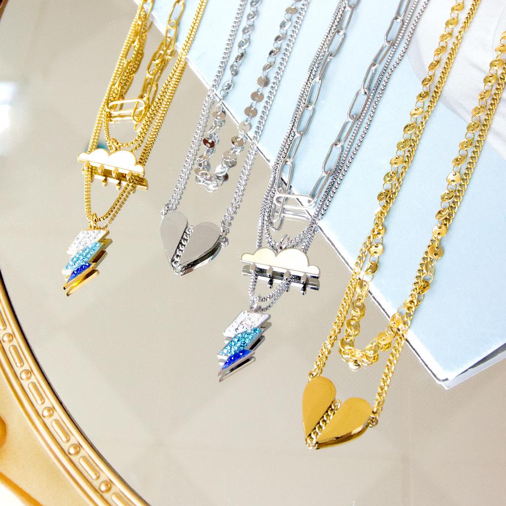 Double Layered Decor Necklaces Heart Broken Woman Choker Rainbow Multilayer Lightning Brand Design Products On Neck