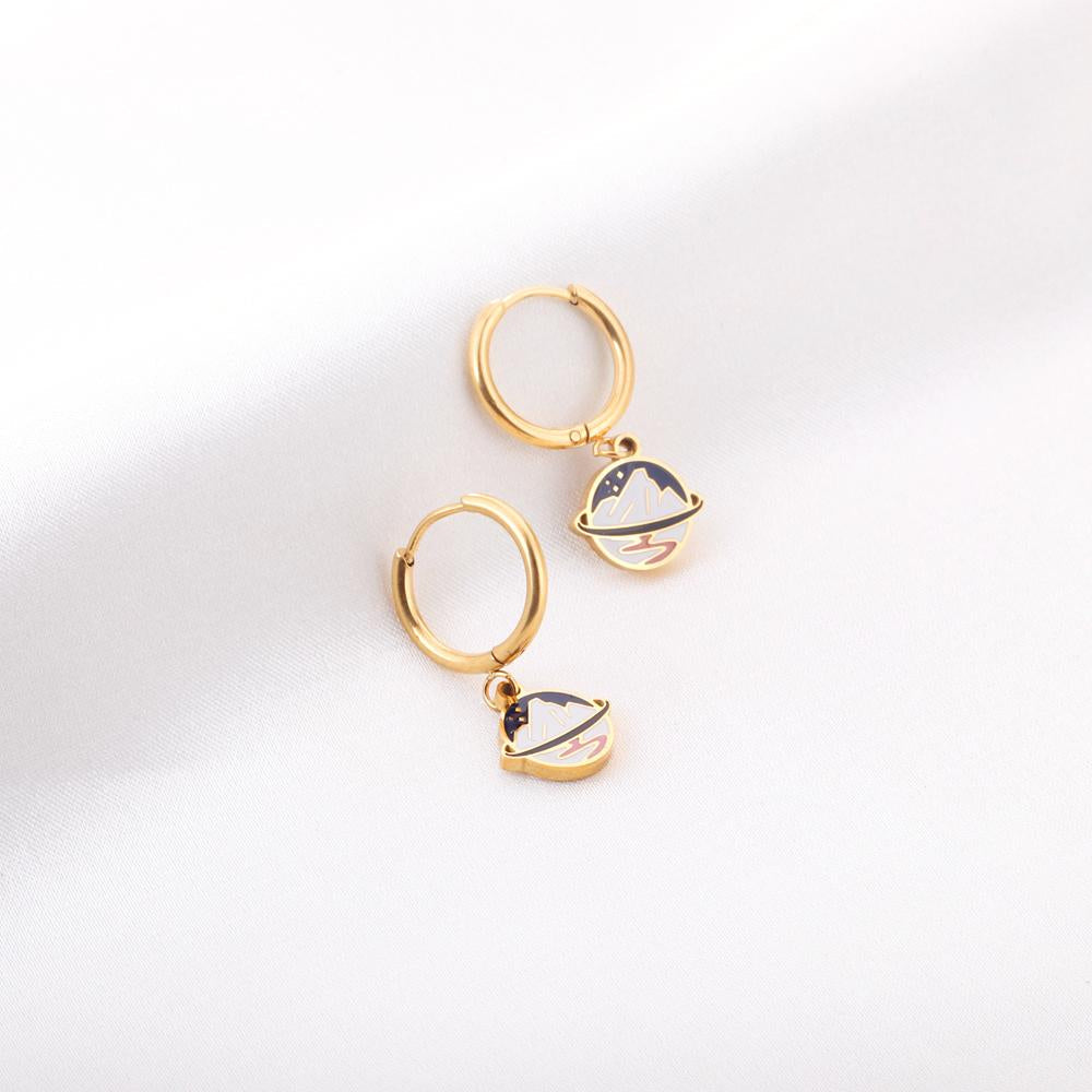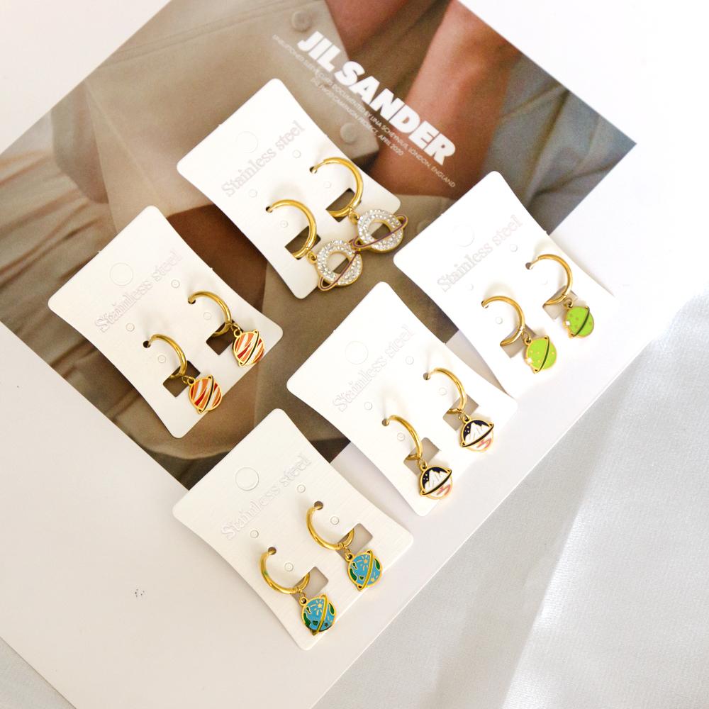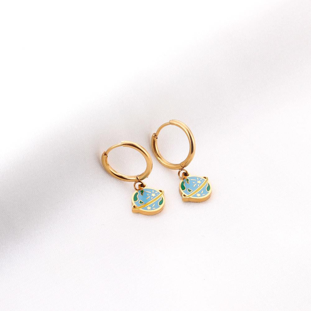 Exquisite pendientes Brand Design Earth Planet Charms Round Geometric Circle Dangle Drop Earrings Acrylic Zirconia