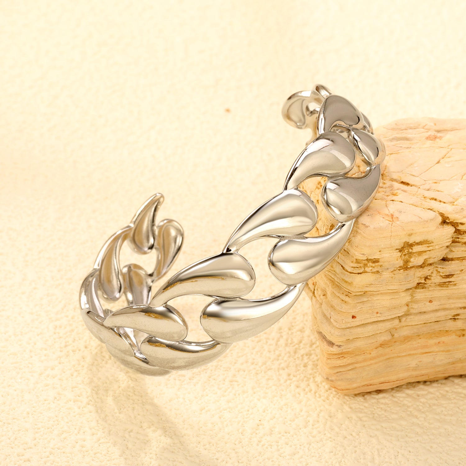 Fashion Accessory Gold Plated Stainless Steel Open Bangle Classic Smooth Water Drop Bracelet