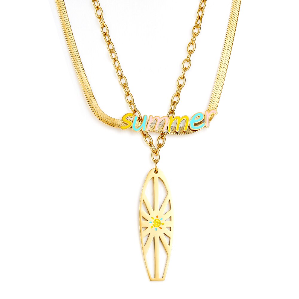 Flat Snake Chain 18K Gold Plated Color Double Layer Necklaces Summer Jewelry For Woman Pendients Design Collier