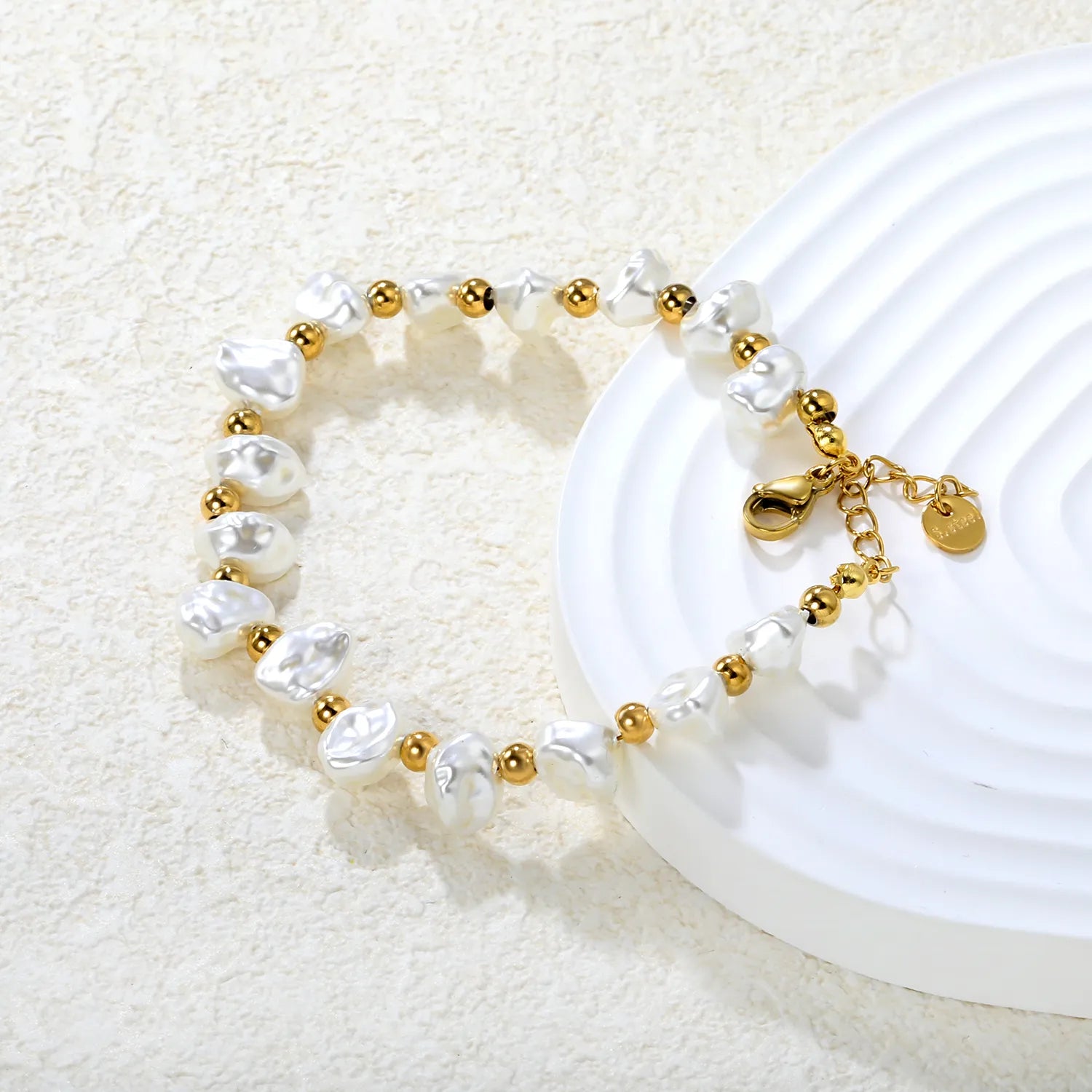 Gold-Tone Stainless Steel Shell Charm Bracelet for Wholesale | 8x9mm Irregular Beads, 4mm Spacers