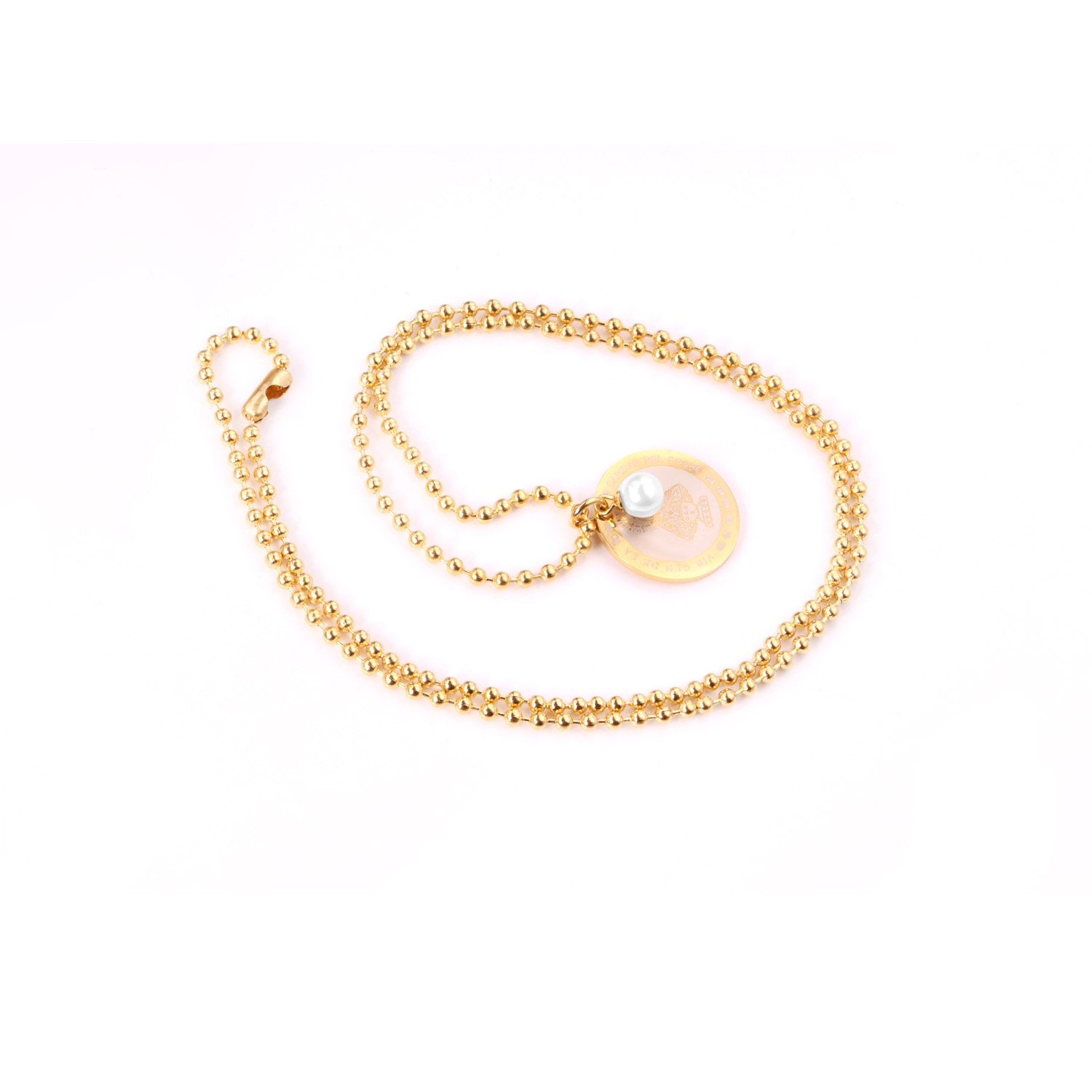 Gothic Fake Pearl Stainless Steel Round Pendant Necklaces For Men Women Jewelry Chain Necklace Collar Collier Set