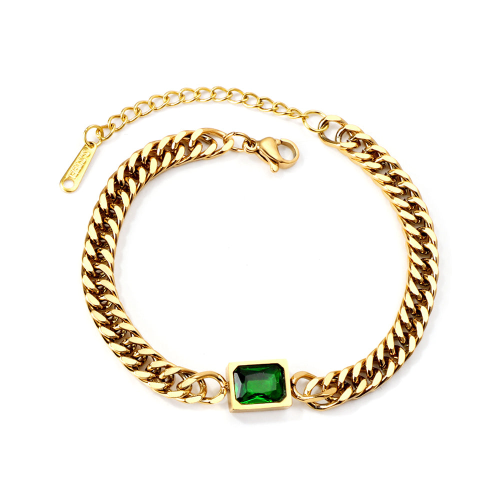 Green diamonds rectangular accessories bracelet 17+5cm gold