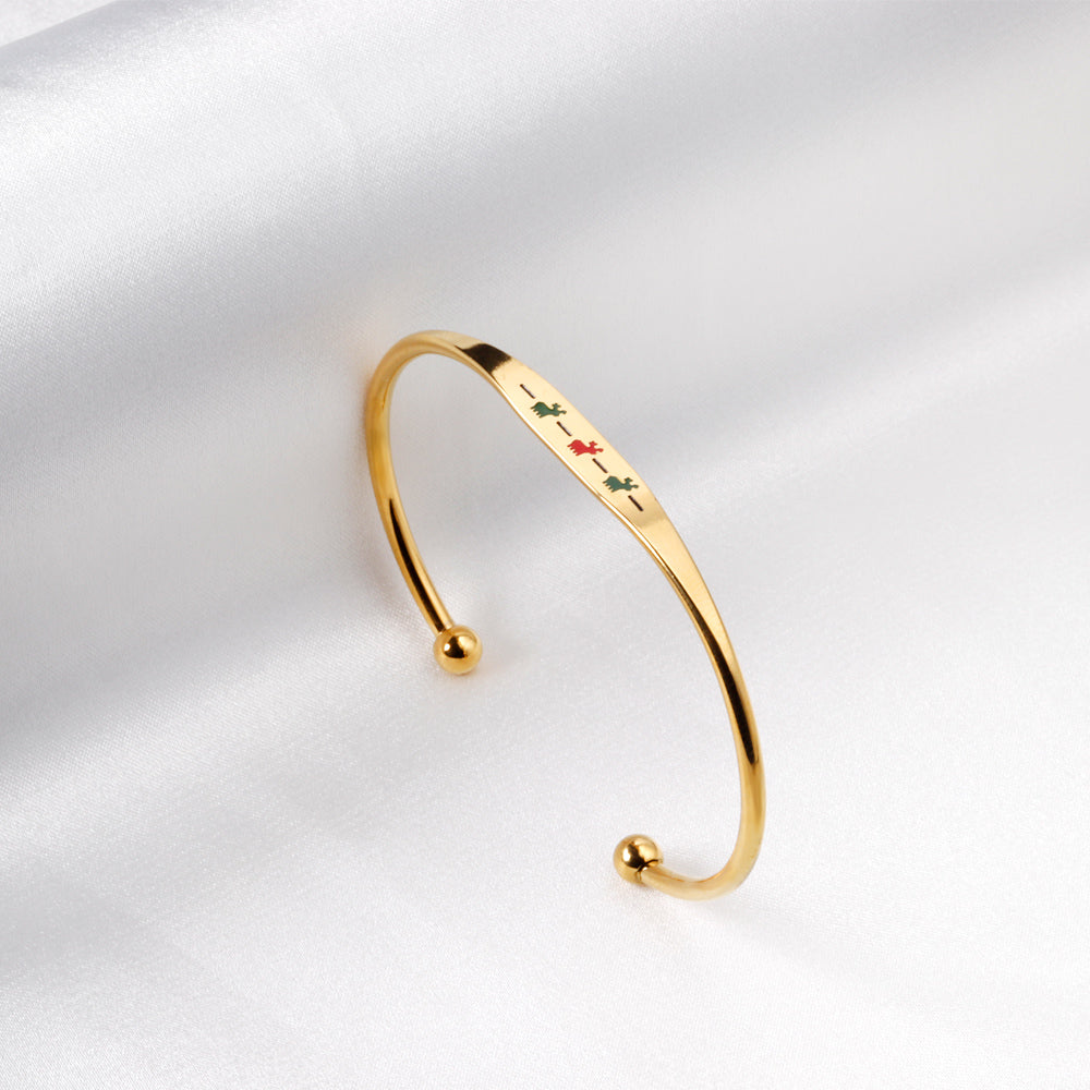 Hard bracelet with oil-drip pattern on gold-colored surface