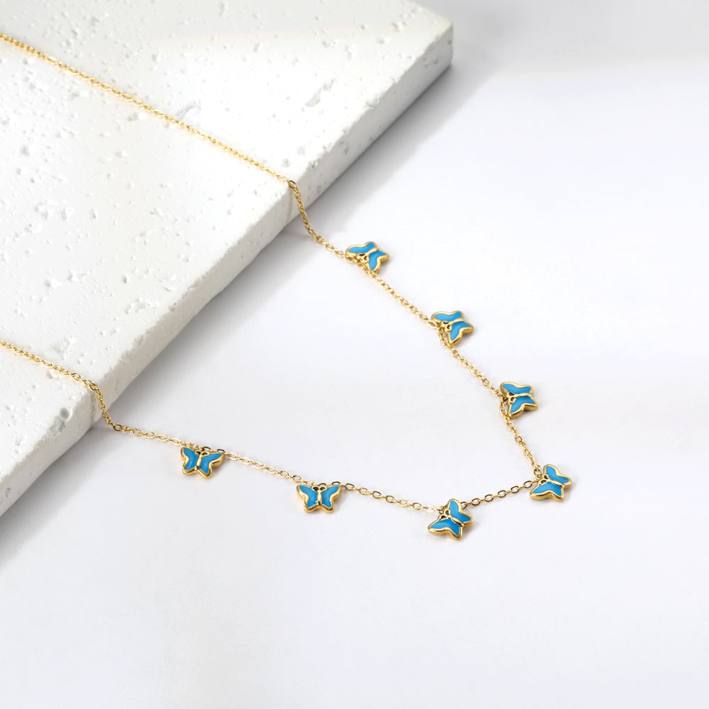 This Heart + Butterfly Oil Drop Pendant Necklace offers an eye-catching and unique look that is sure to turn heads. The necklace features a heart and butterfly design crafted from alloy with oil drops that add an extra level of shine and elegance. The perfect piece to add a pop of style to your wardrobe.