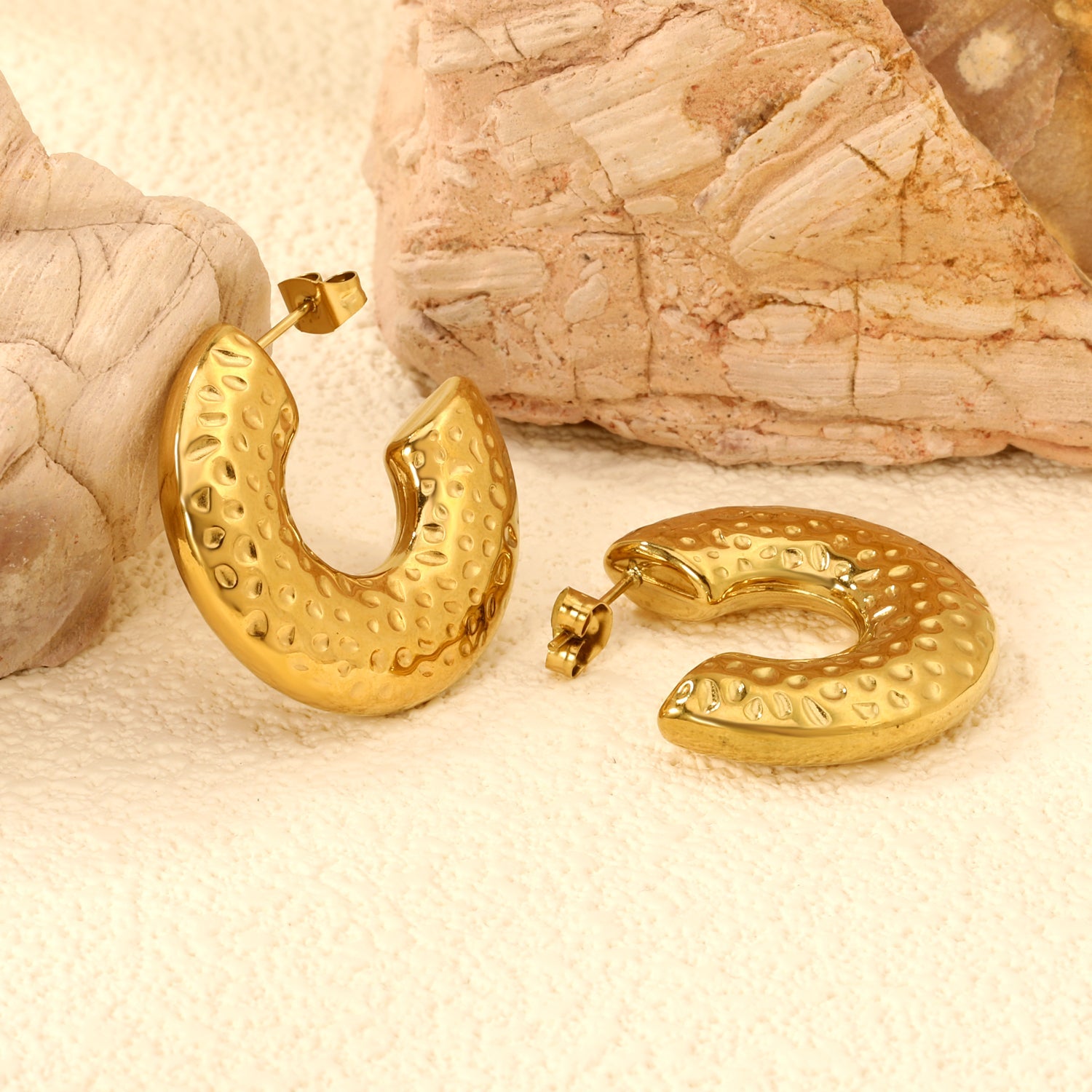 Hollow C-shaped pitted earrings 10*31mm gold color