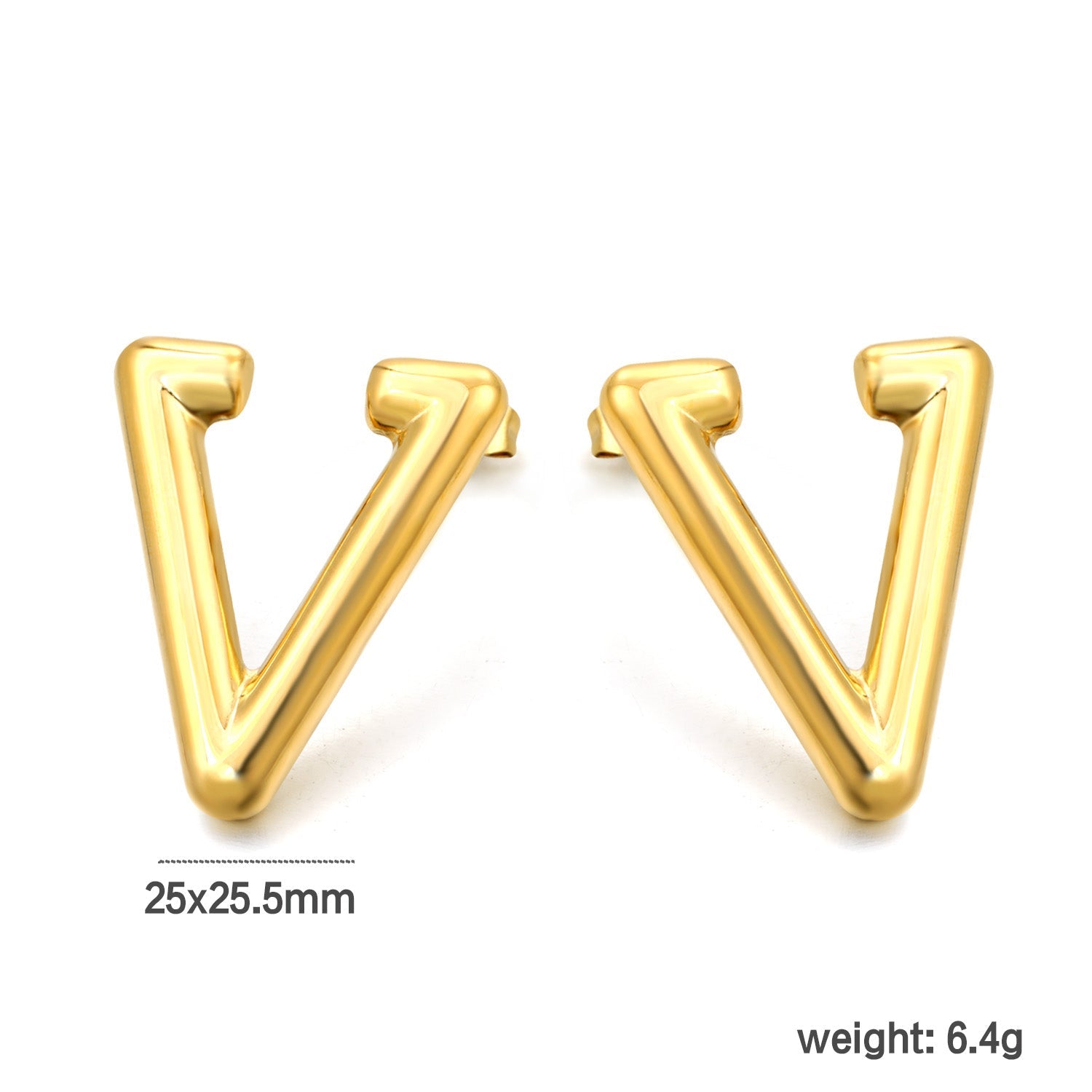 These Hollow V-shaped earrings provide a unique and stylish accessory to any outfit. Crafted with precision, the earrings measure 25*28.5mm and are coated in a luxurious gold color. Featuring a hollow design, these earrings are lightweight and comfortable to wear. Upgrade your jewelry collection with these stunning earrings.