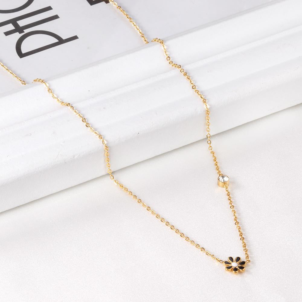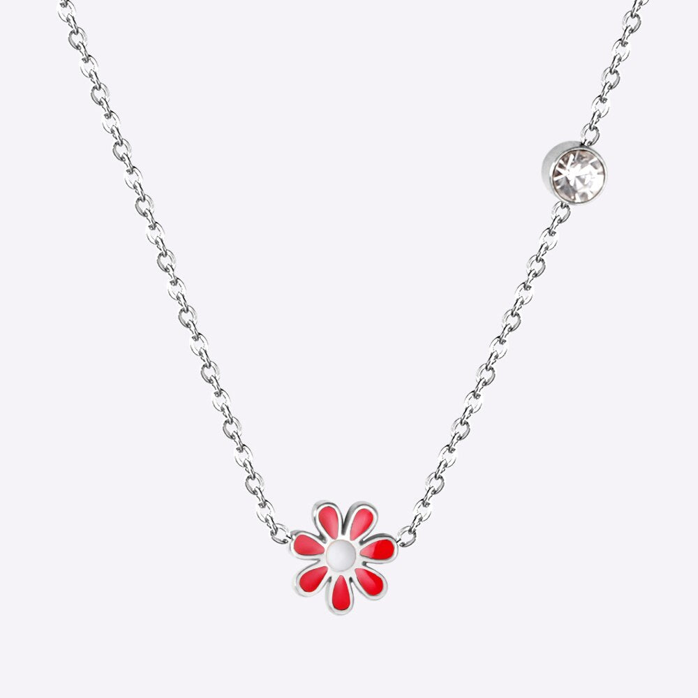Korean Fashion Romantic Colorful Flower Pendant Stainless Steel Chain Necklace For Women Jewelry Parts bijoux femme