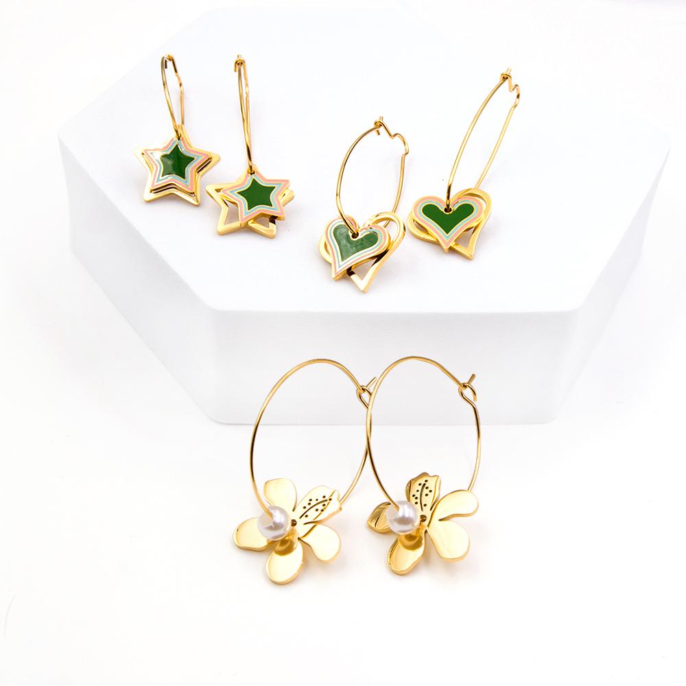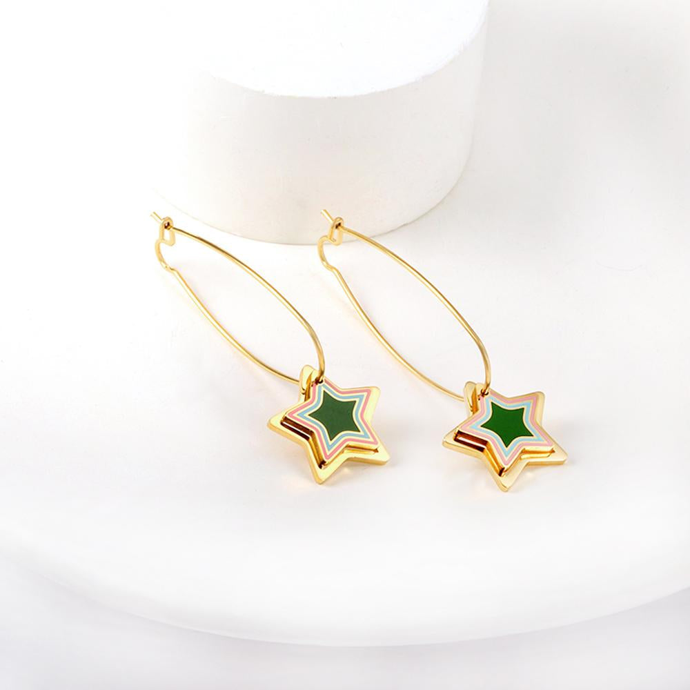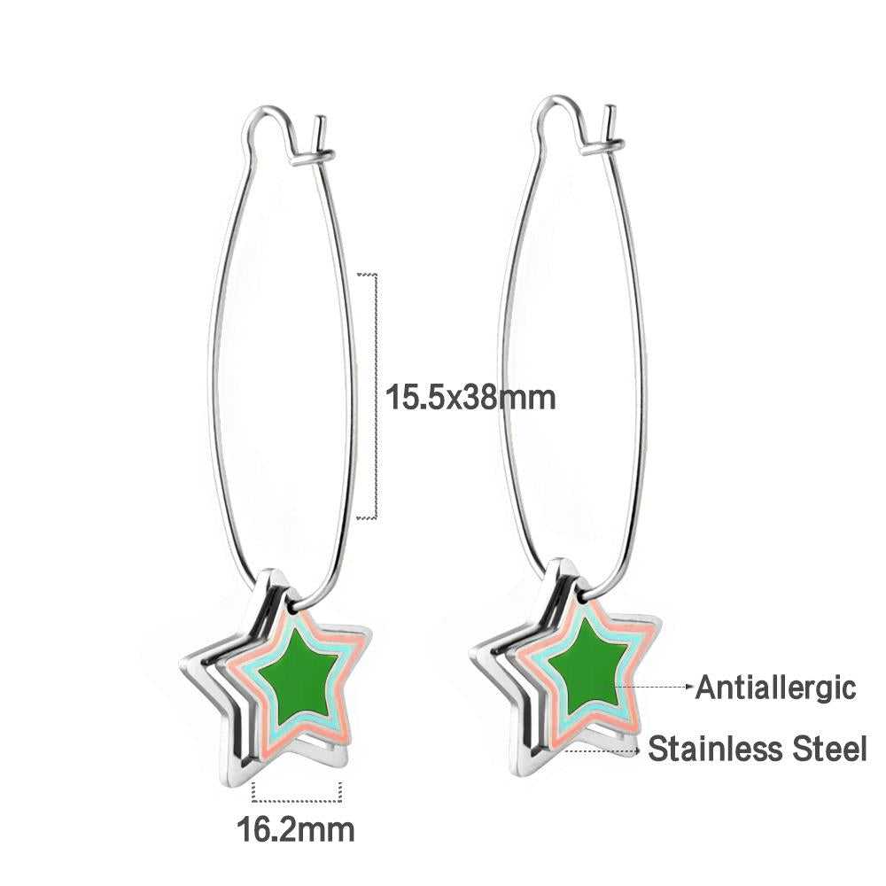 Korean Thin Hoop Earrings For Women Oval Hoops with Colorful Star Heart Charm Stainless Steel Jewelry Accessories