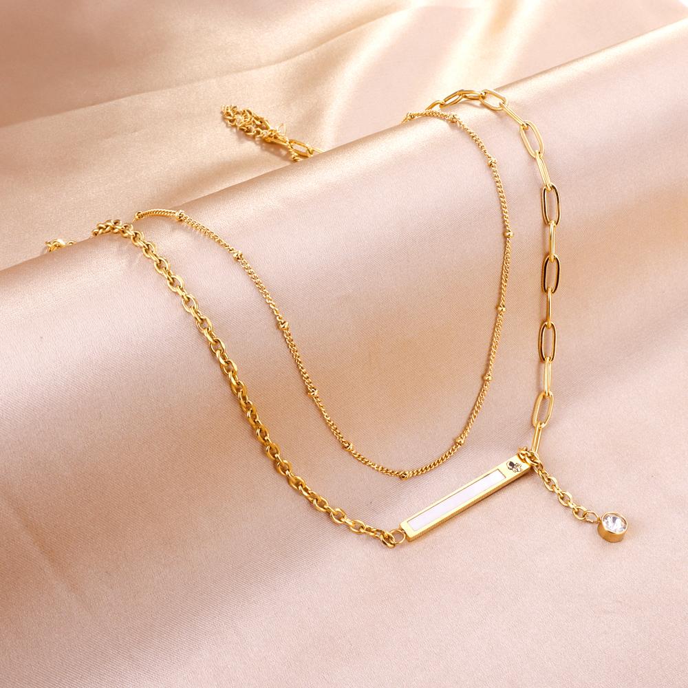 Link Chain Classic Design With Beads Chain Mix Collier Doule Layer Pendant Necklace With AAA Cubic Zirconia 2022