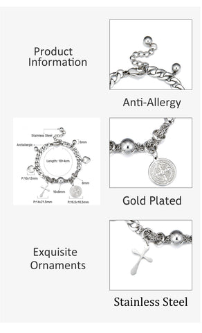 Round Accessories + Cross+2 Heart-shapeds +3 Steel Balls bracelet